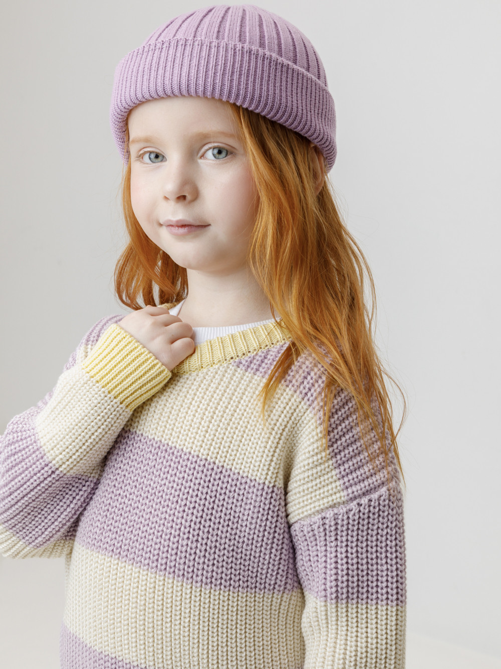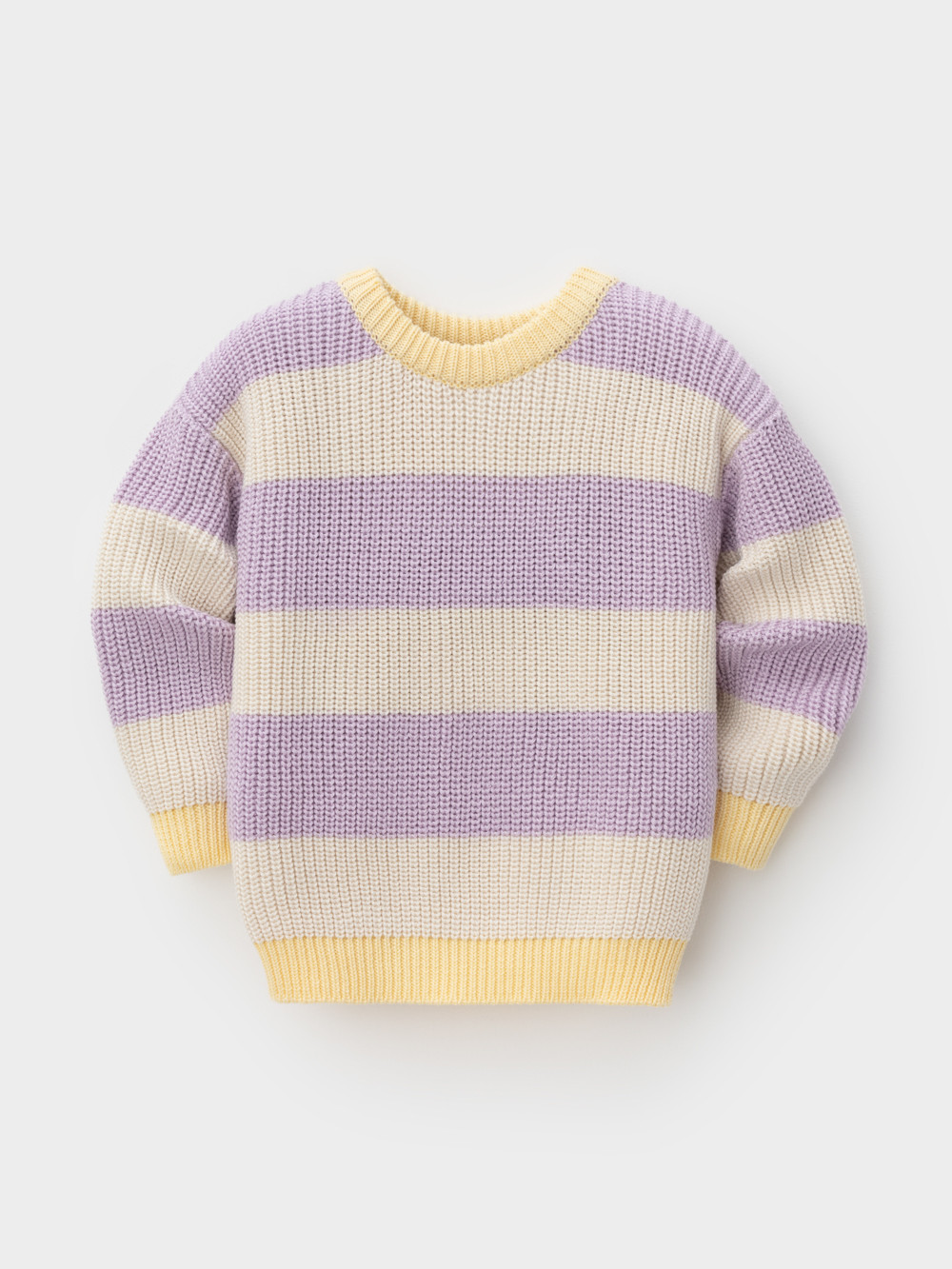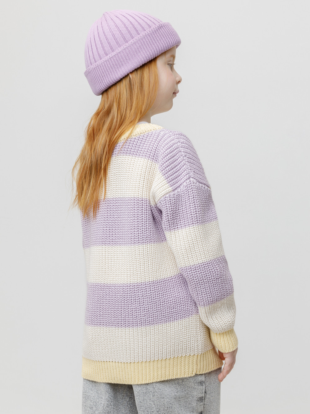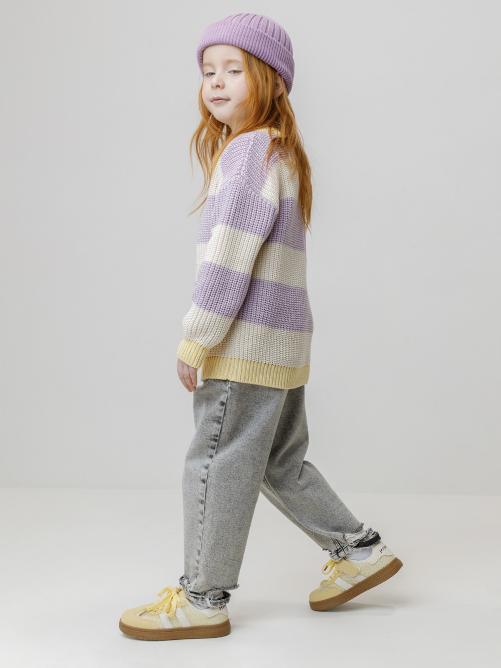 Вязаный джемпер объёмный. Изготовлен из мягкой хлопковой пряжи с добавлением акрила. Длинные рукава с манжетами. Внизу эластичный пояс. Изделие сохраняет форму и стойкий цвет после многочисленных стирок.