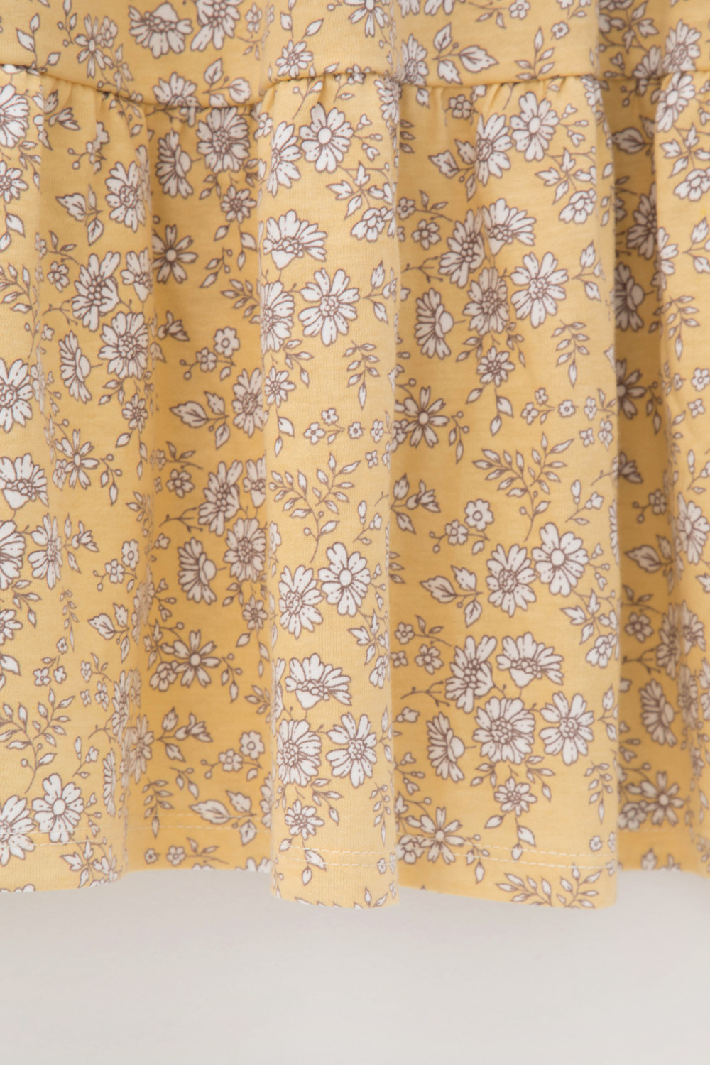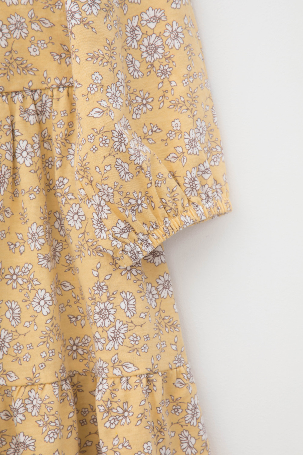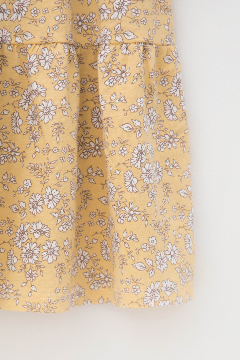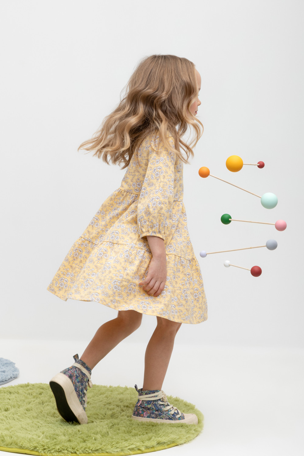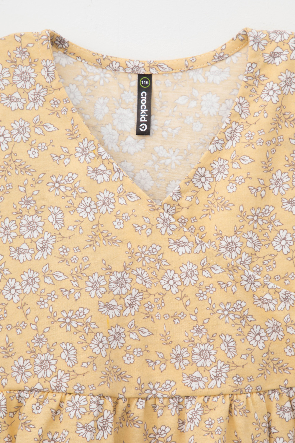 Легкое трикотажное платье на запах для девочки из высококачественного хлопка. Оригинальная набивка выполнена из стойких текстильных гипоаллергенных красителей. Изделие сохраняет цвет и форму после многократных стирок