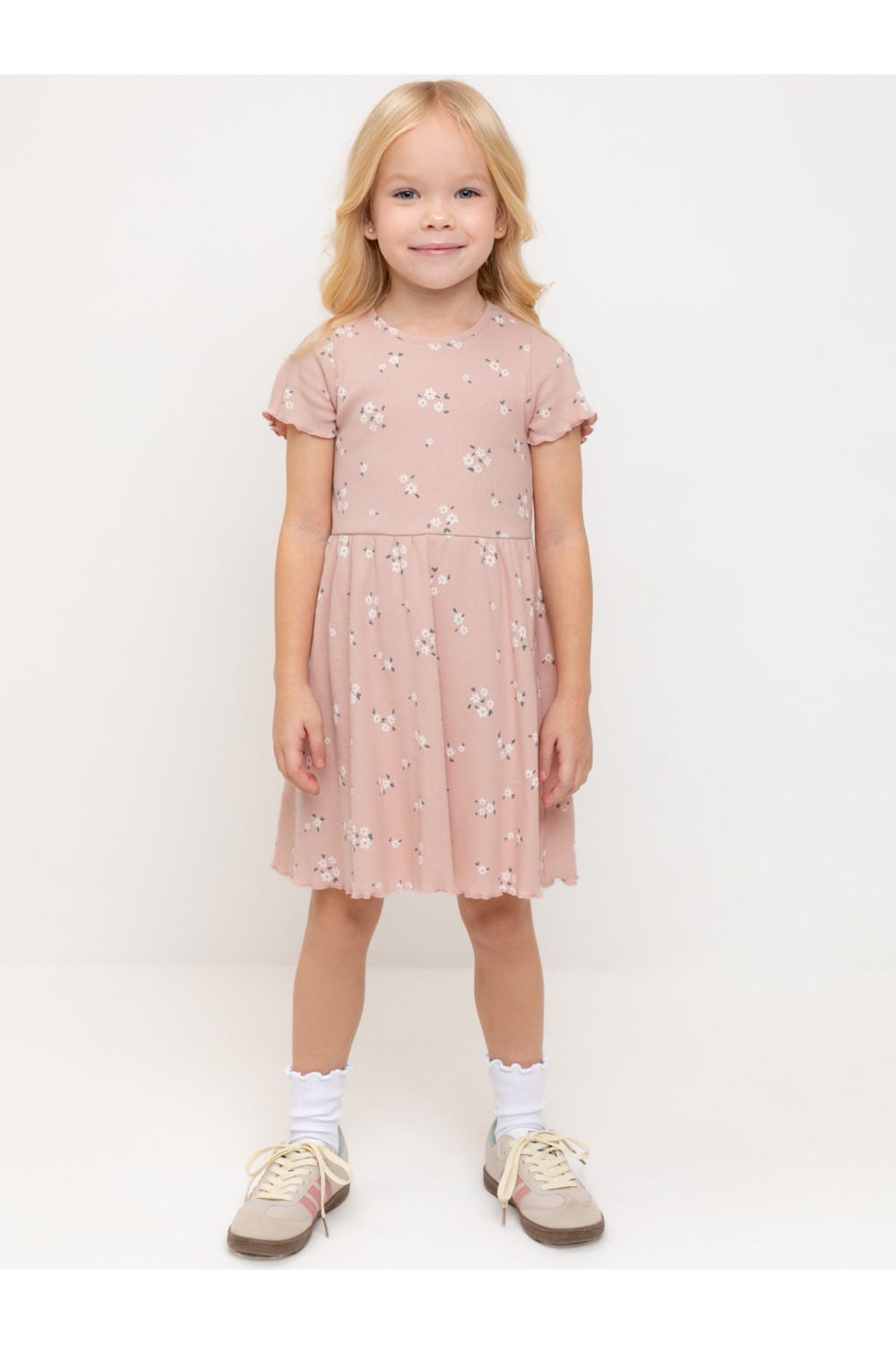 Летнее платье для девочки из эластичного трикотажа в рубчик. Оригинальная набивка выполнена из стойких текстильных гипоаллергенных красителей.