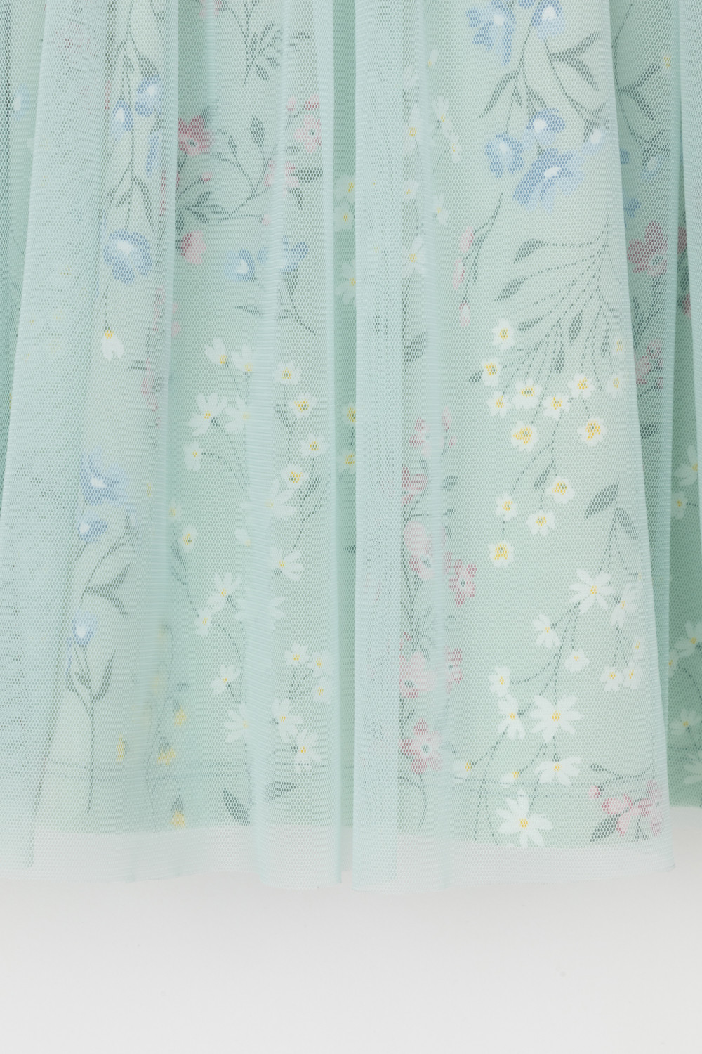 Легкое нарядное платье для девочки из высококачественного трикотажа, верхний слой - из сетки. Застёгивается на спинке с помощью кнопок. Оригинальная набивка выполнена из стойких текстильных гипоаллергенных красителей. Изделие сохраняет цвет и форму после многократных стирок.