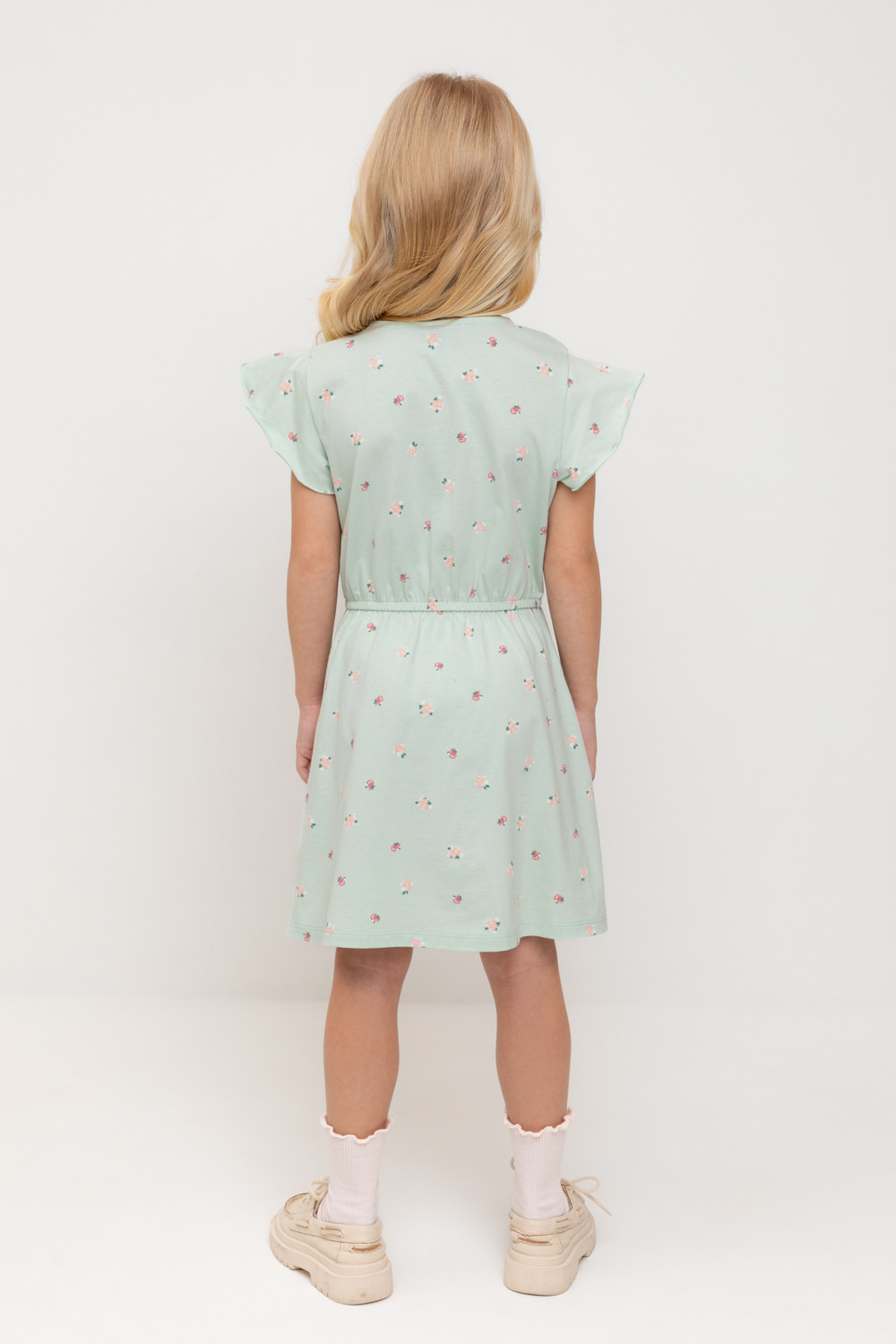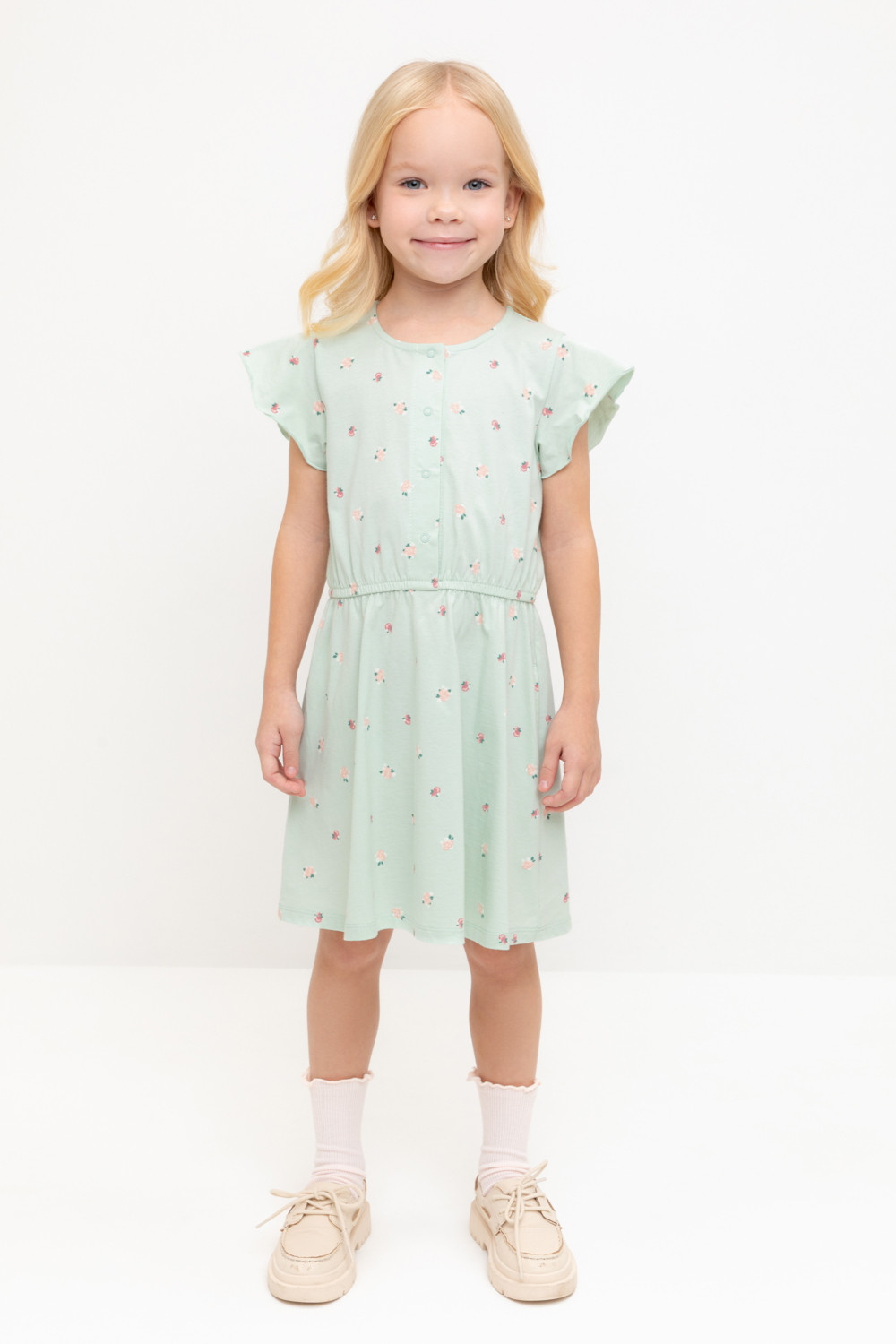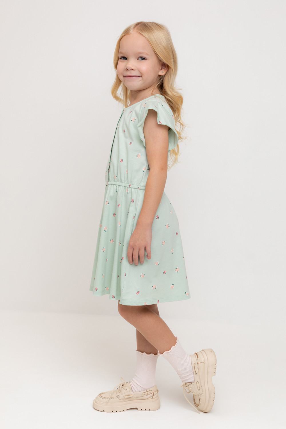 Платье для девочки из высококачественного трикотажа супрем. Верх украшен изящными крылышками. Для удобства одевания платье застёгивается на кнопки спереди. Платье сохраняет форму и стойкий цвет после многочисленных стирок и идеально подходит на каждый день.