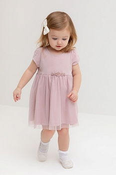Нарядное платье с боди для девочки. Изготовлено из высококачественного хлопкового трикотажа супрем. Поверх юбки лёгкая сетка. Удобные застёжки расположены на спинке и по низу изделия. Спереди украшено декоративными розочками. Изделие сохраняет цвет и форму после многократных стирок.