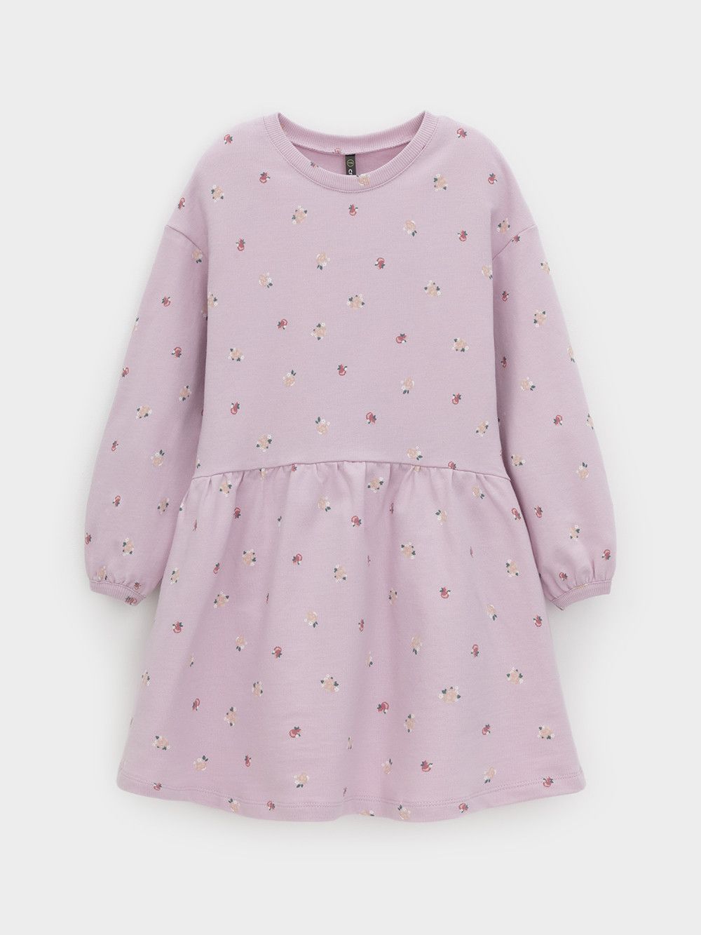 Платье для девочки с длинными рукавами из мягкого петельчатого трикотажа. Для удобства одевания в 98 размере платье застёгивается на кнопки спереди. Платье сохраняет форму и стойкий цвет после многочисленных стирок и идеально подходит на каждый день.