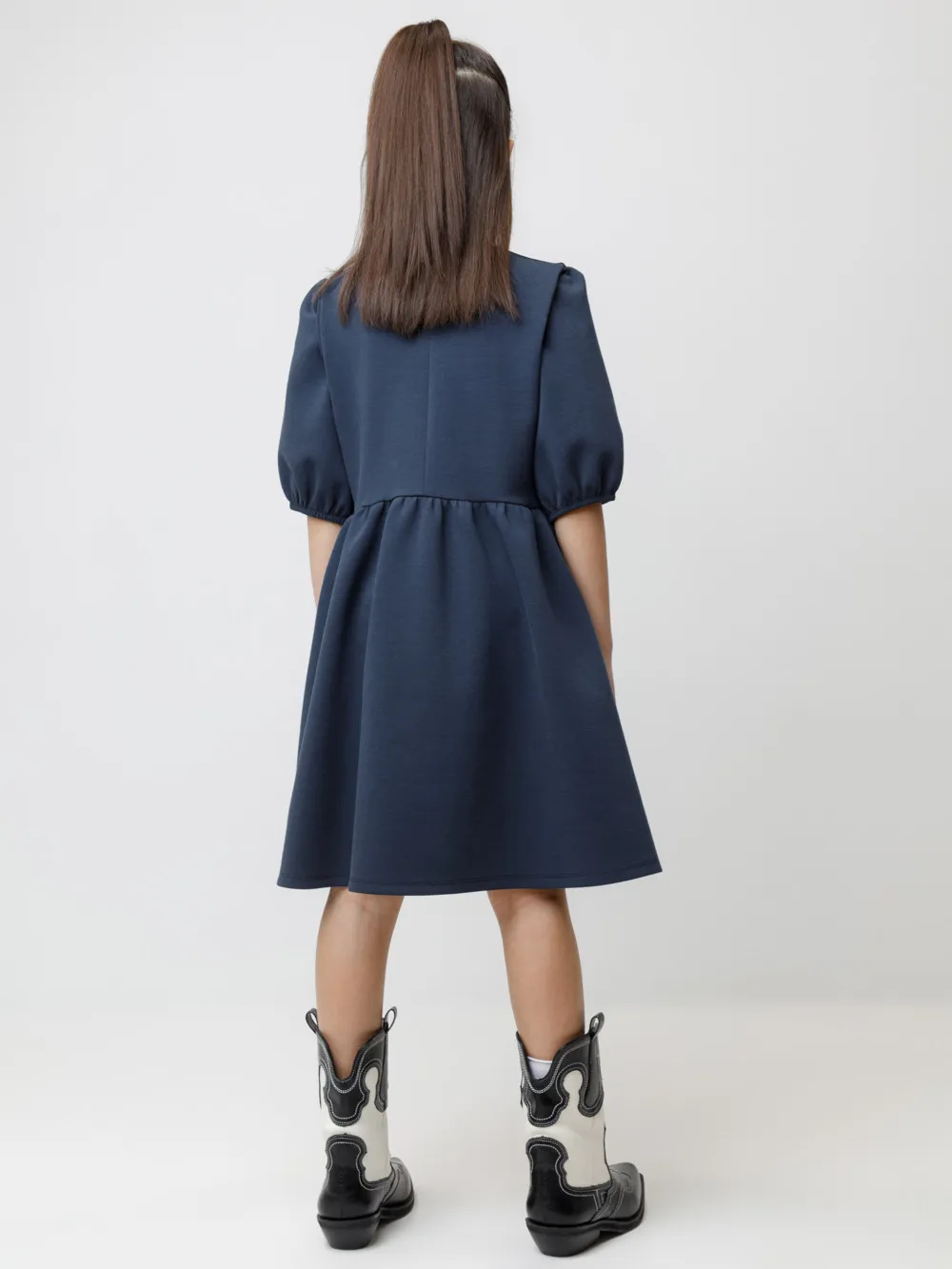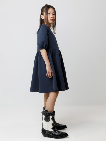 Платье школьное с короткими рукавами для девочки. Изготовлено из высококачественного трикотажа интерлок DOUBLE FACE. Застёгивается на пуговицу на спинке. Низ рукавов собран на резинку. Идеальный и комфортный вариант на каждый день.