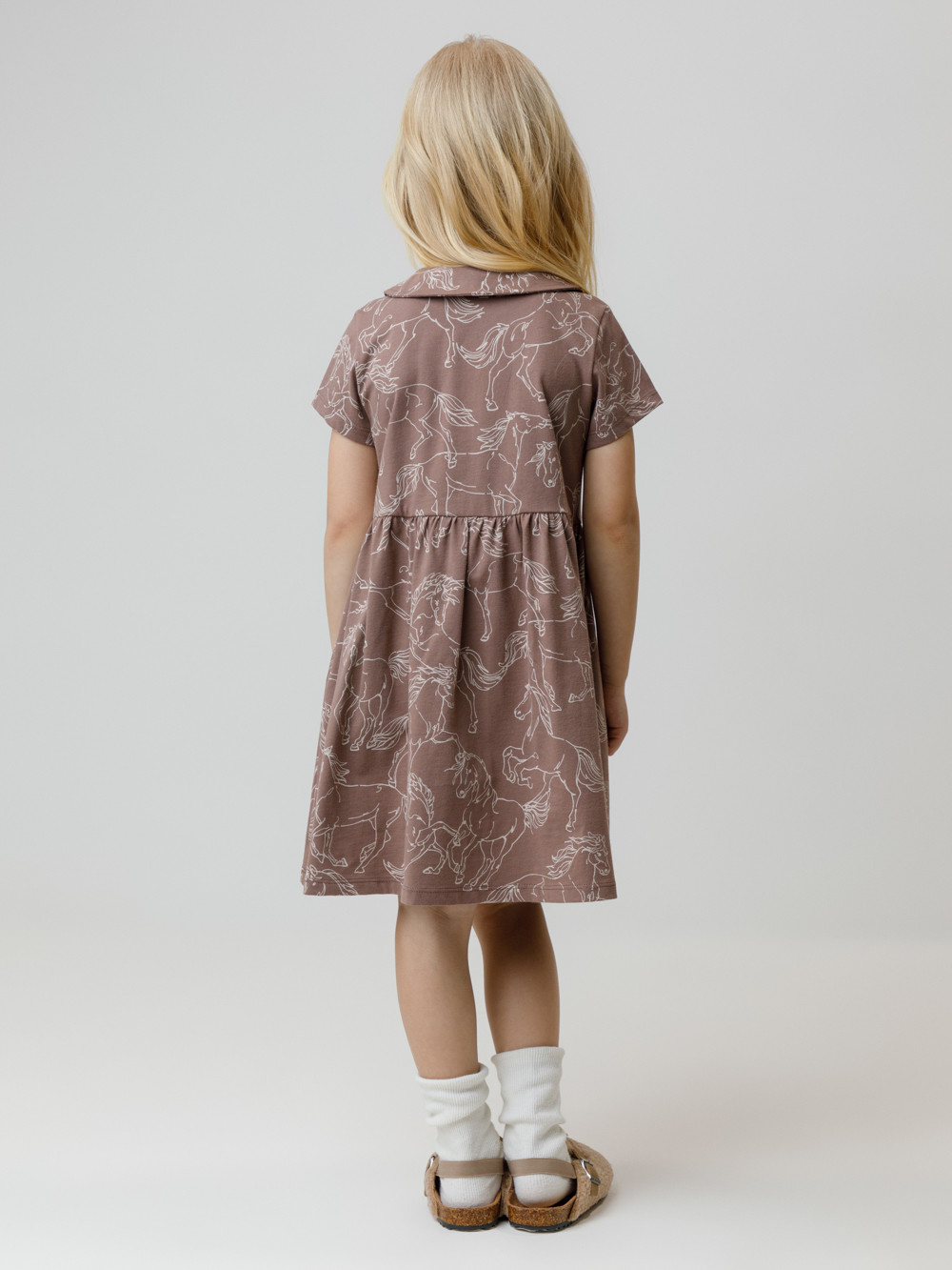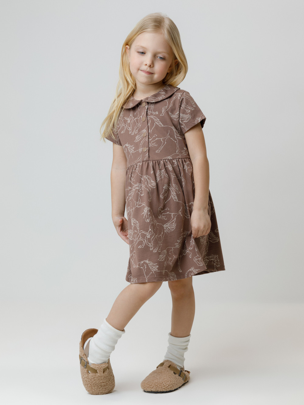 Платье для девочки с короткими спущенными рукавами из гладкого хлопкового трикотажа. Для удобства одевания застёгивается спереди на планку с кнопками. Платье сохраняет форму и стойкий цвет после многочисленных стирок и идеально подходит на каждый день. Все трикотажные полотна производятся в соответствии с нормами швейцарского сертификата ЭкоТекс.