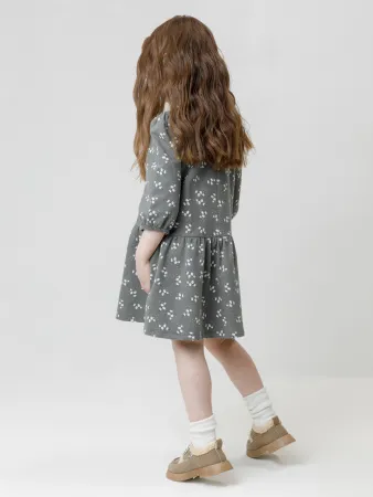 Платье для девочки с короткими рукавами из мягкого петельчатого трикотажа. Для удобства одевания платье на спинке застёгивается на пуговицу. Платье сохраняет форму и стойкий цвет после многочисленных стирок и идеально подходит на каждый день. Все трикотажные полотна производятся в соответствии с нормами швейцарского сертификата ЭкоТекс.