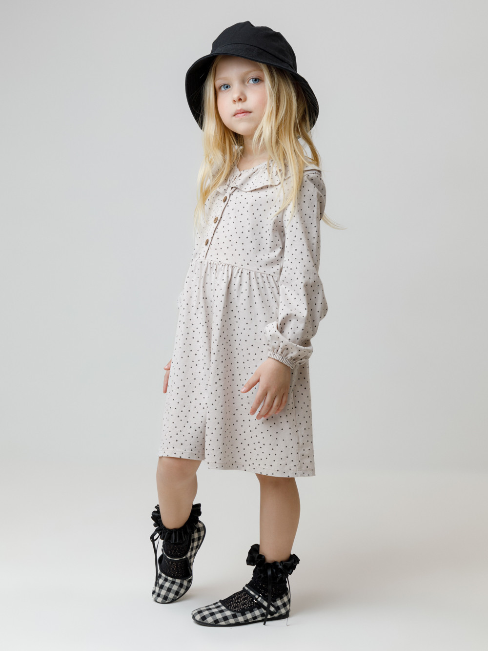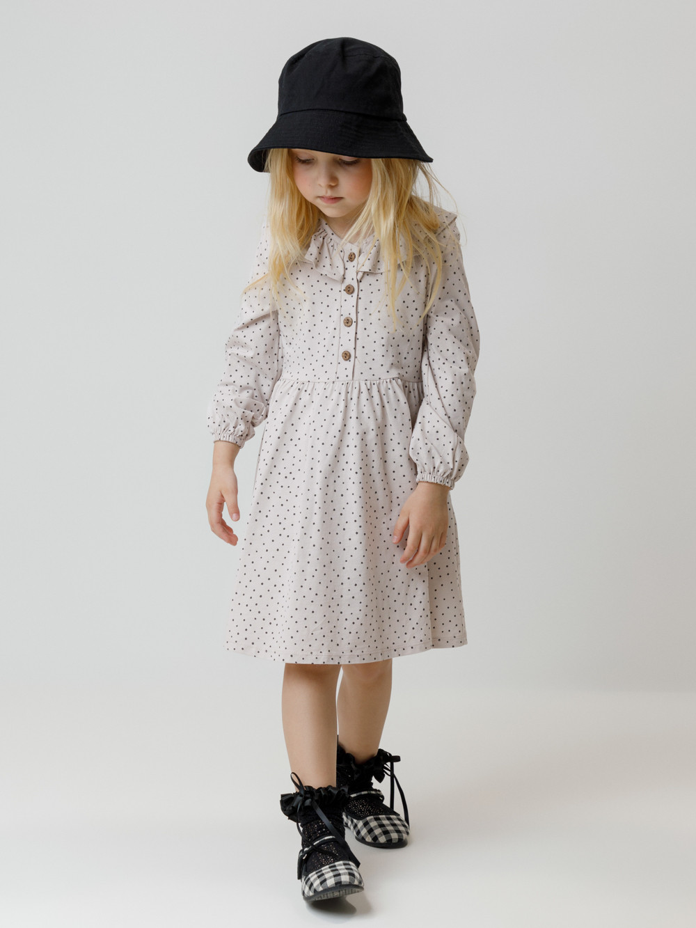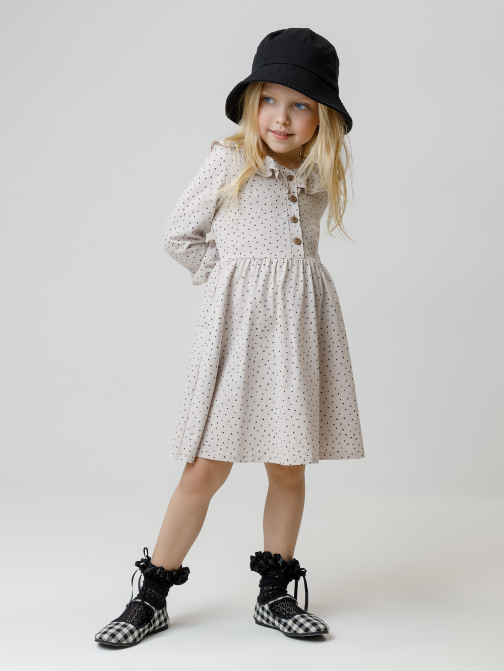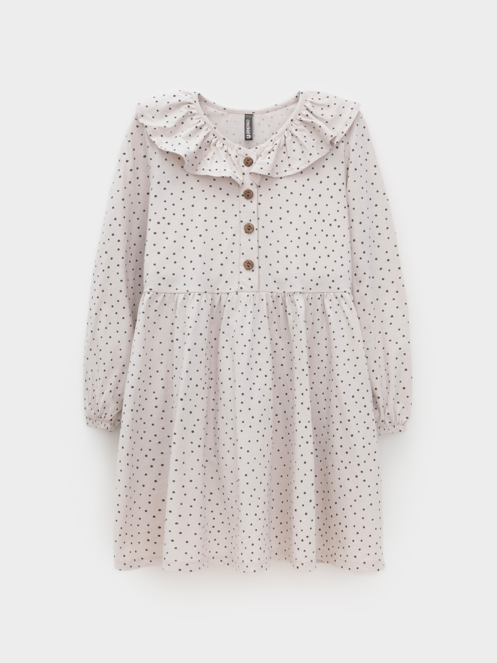 Платье для девочки с длинными рукавами из гладкого хлопкового трикотажа. Для удобства одевания спереди застёгивается на пуговицы. Платье сохраняет форму и стойкий цвет после многочисленных стирок и идеально подходит на каждый день. Все трикотажные полотна производятся в соответствии с нормами швейцарского сертификата ЭкоТекс.
