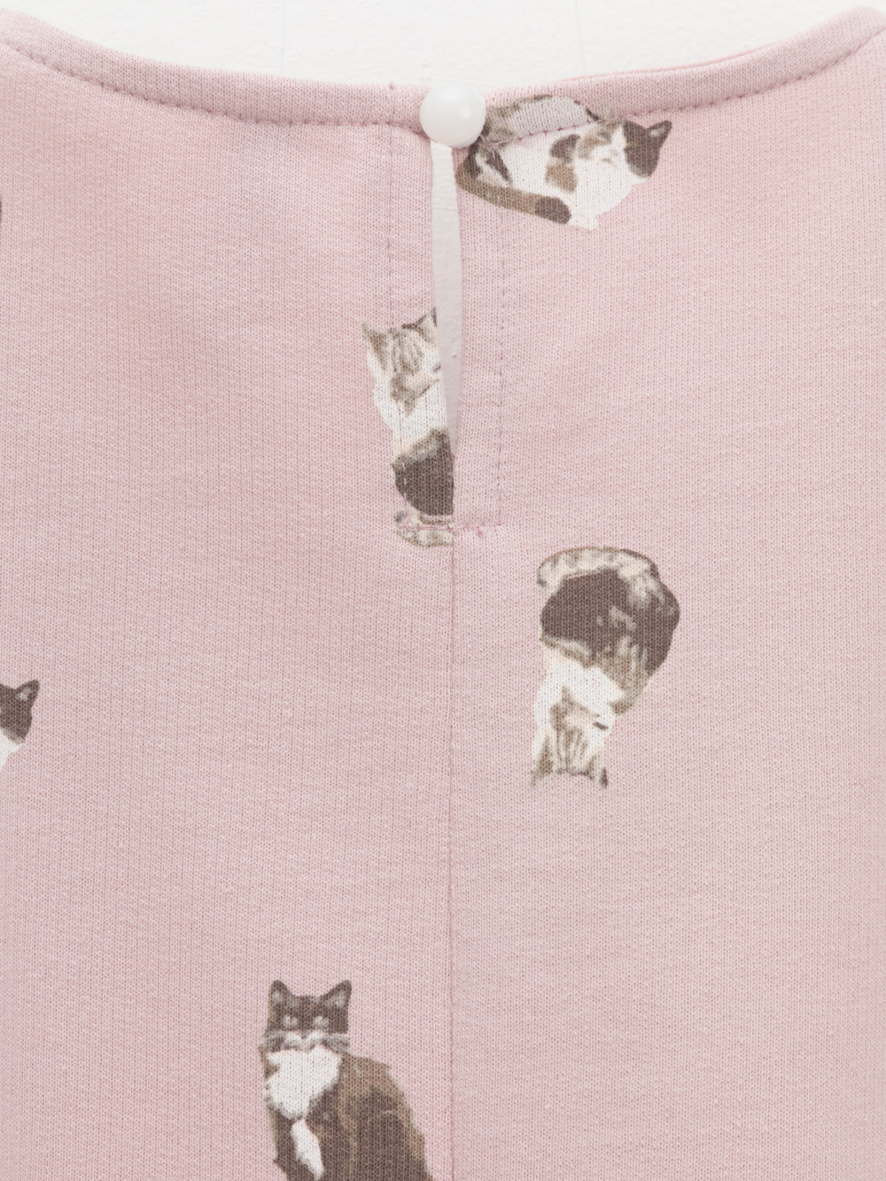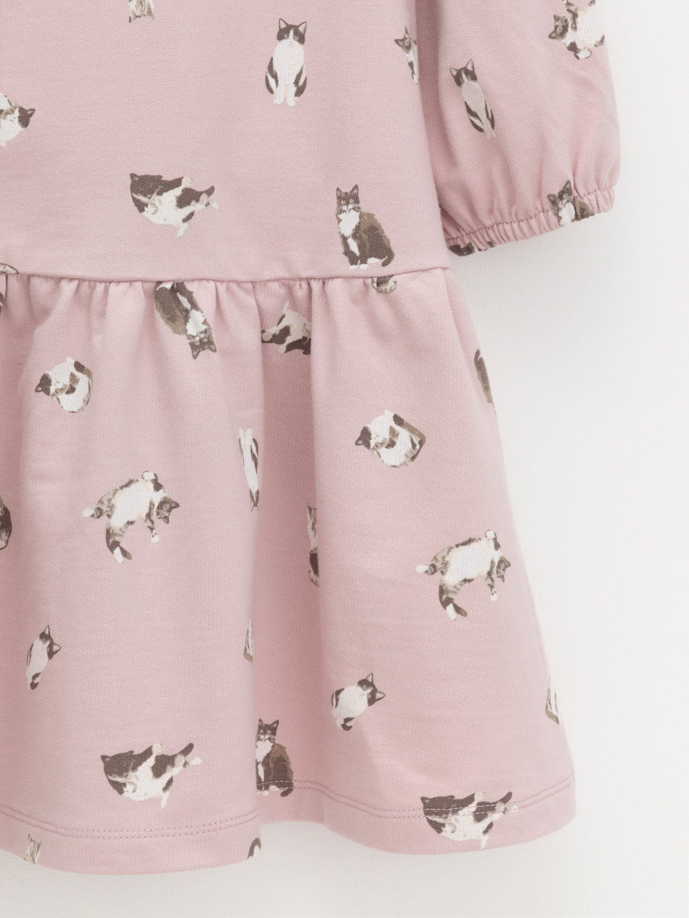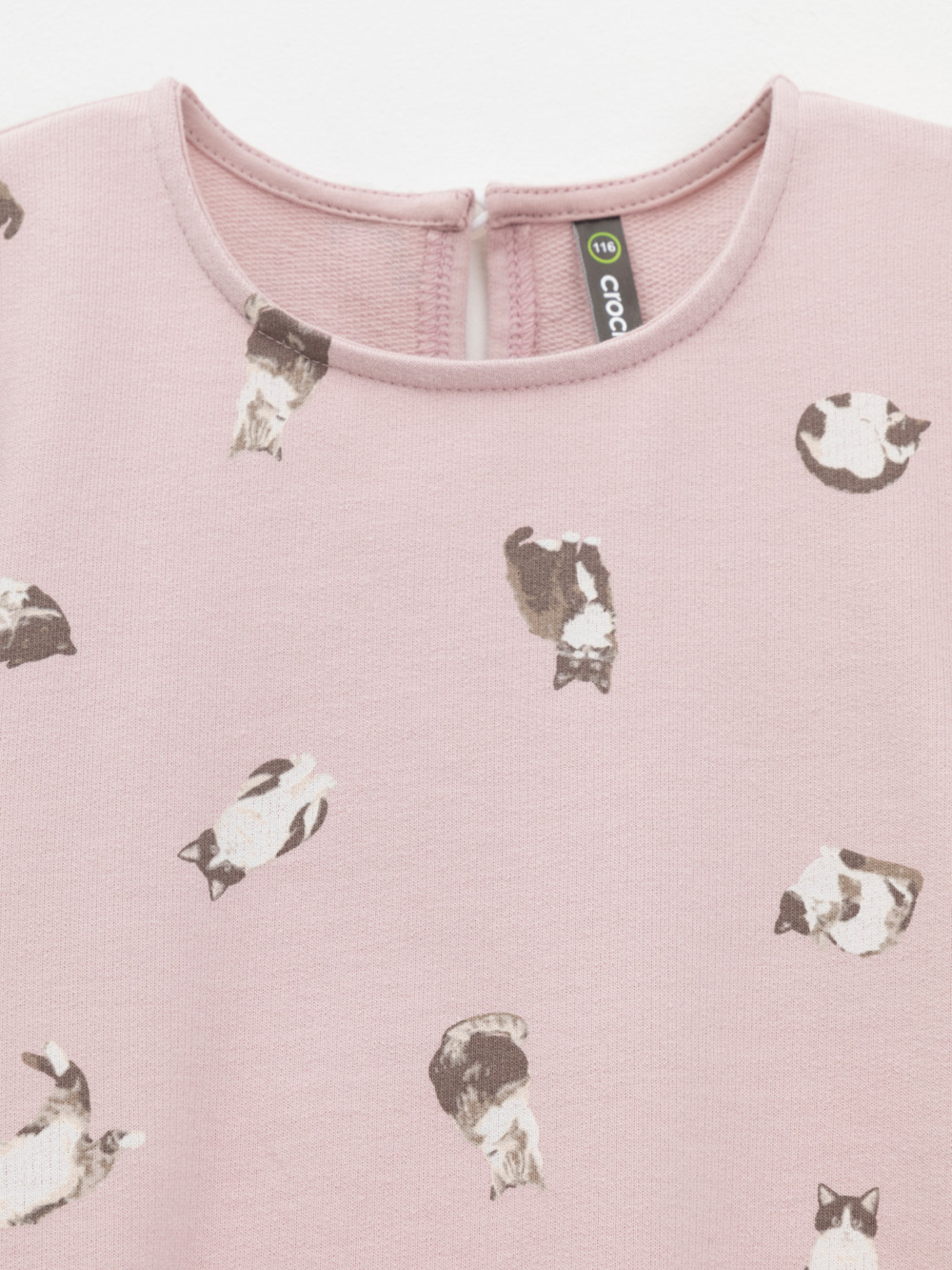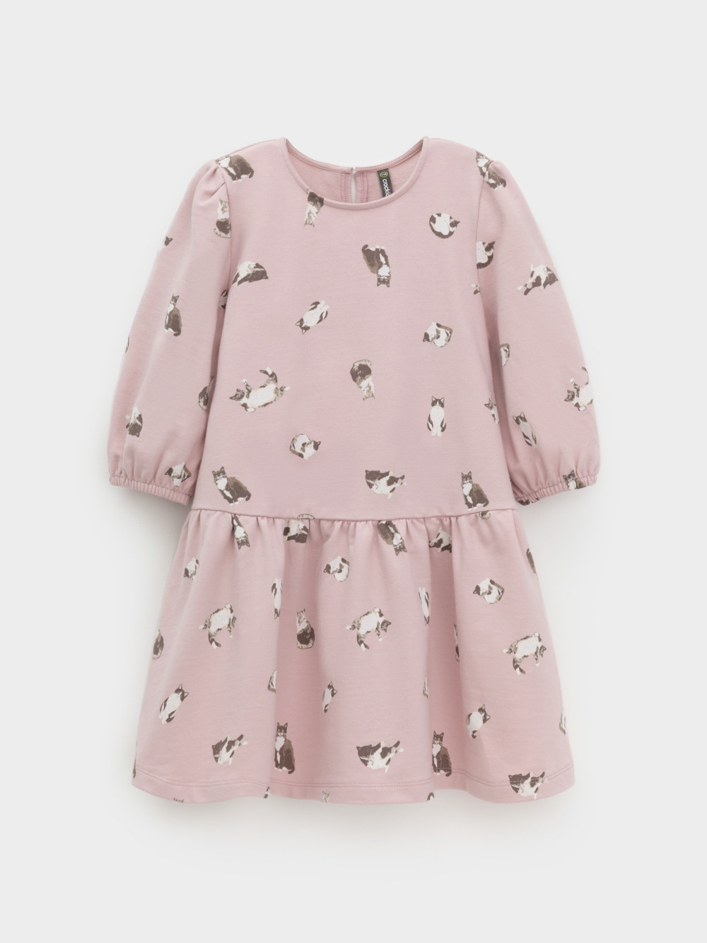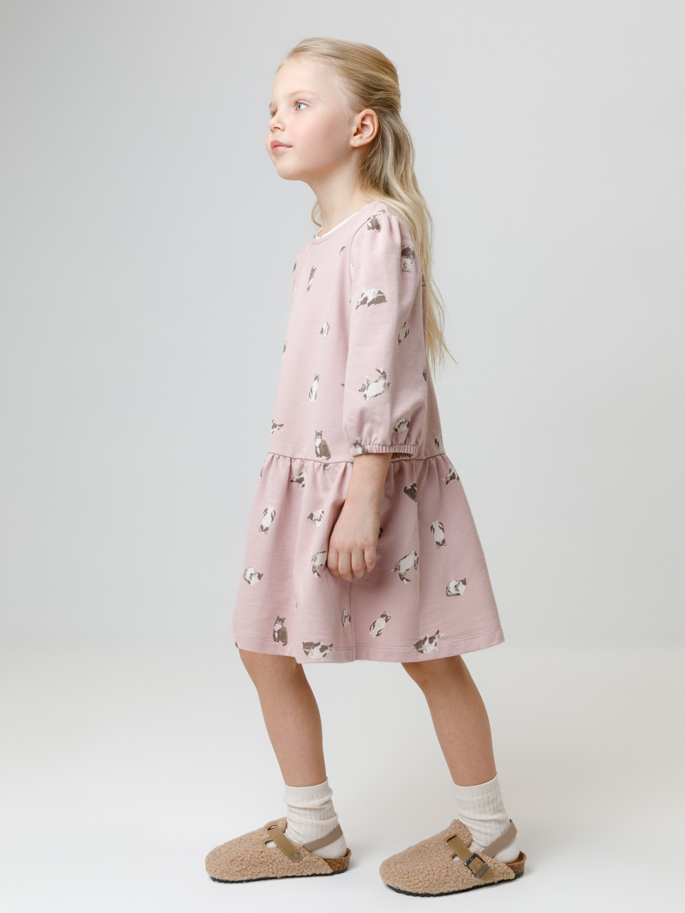 Платье для девочки с короткими рукавами из мягкого петельчатого трикотажа. Для удобства одевания платье на спинке застёгивается на пуговицу. Платье сохраняет форму и стойкий цвет после многочисленных стирок и идеально подходит на каждый день. Все трикотажные полотна производятся в соответствии с нормами швейцарского сертификата ЭкоТекс.