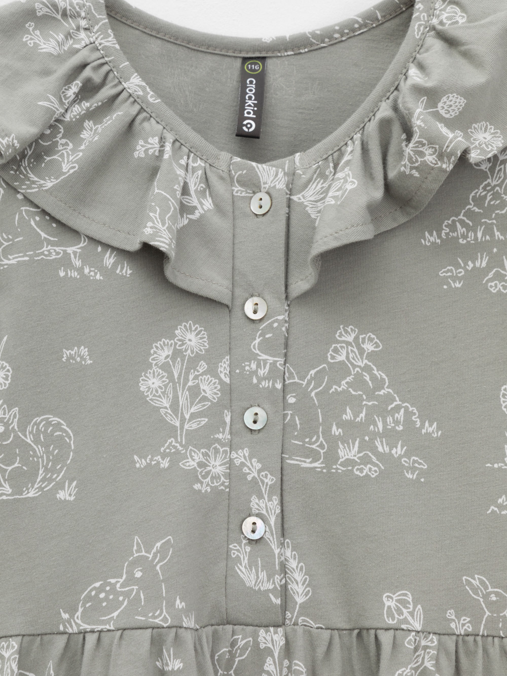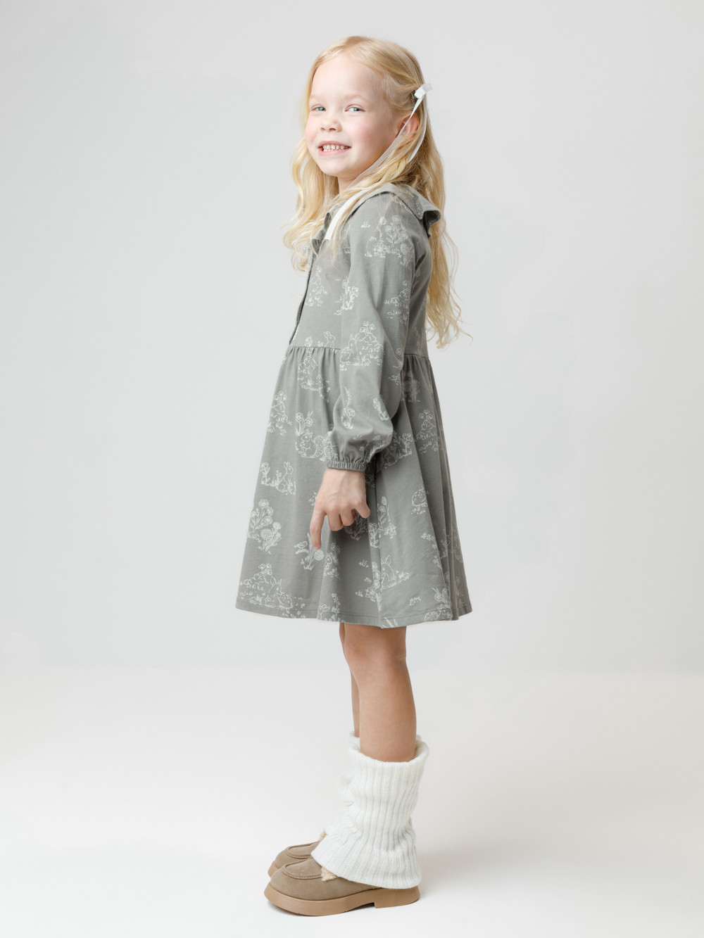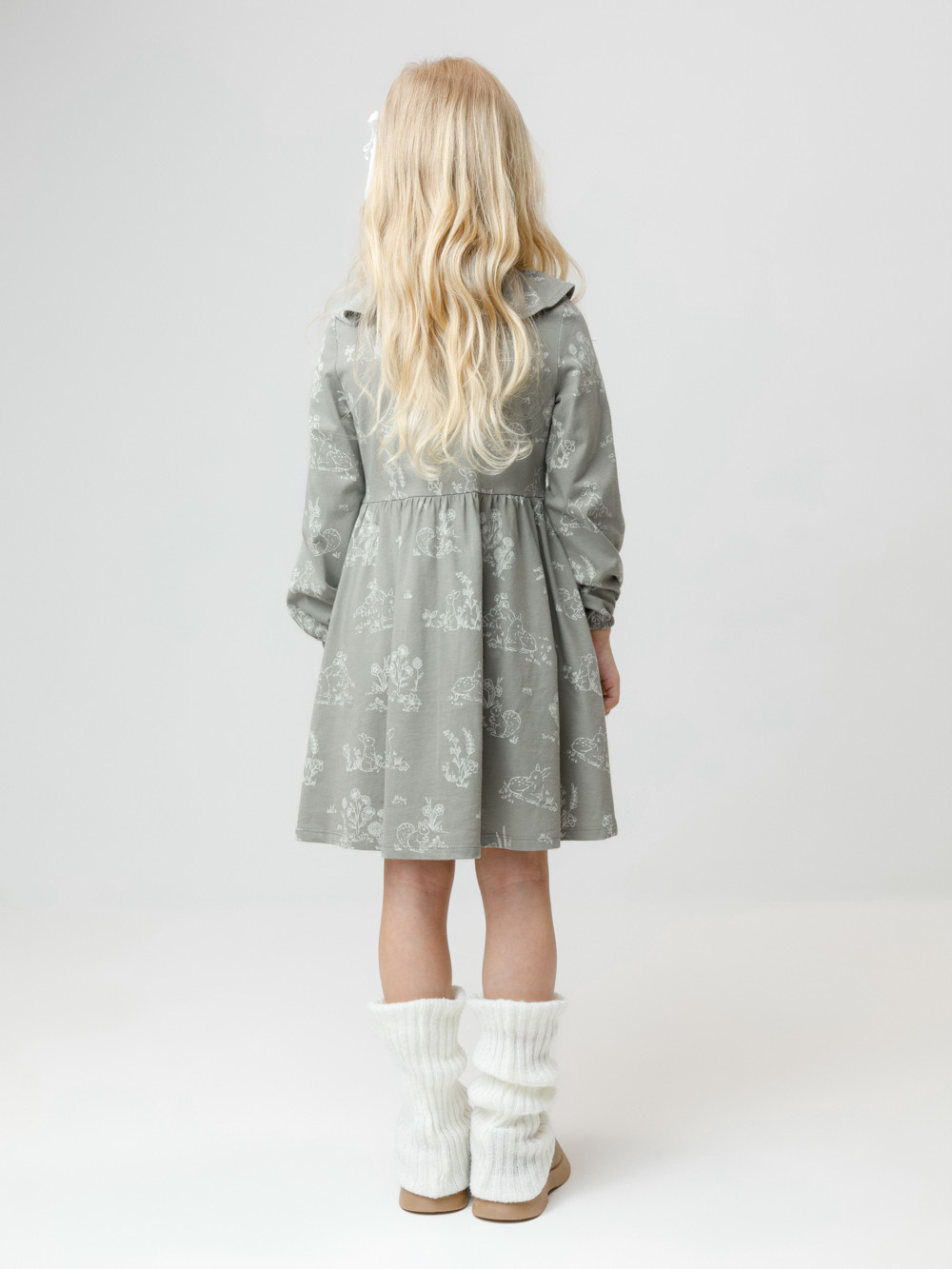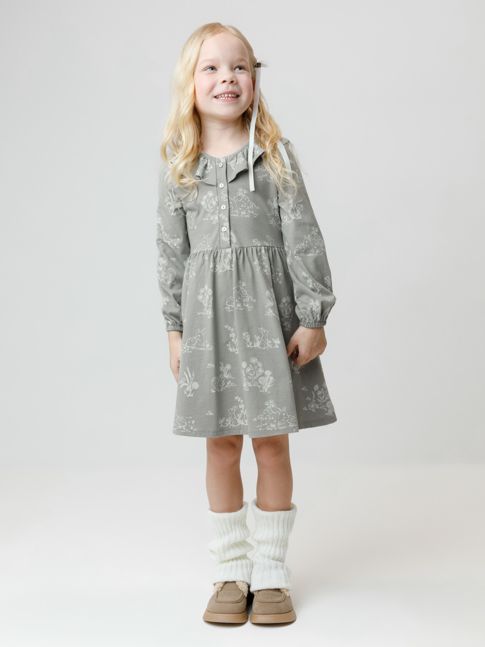 Платье для девочки с длинными рукавами из гладкого хлопкового трикотажа. Для удобства одевания спереди застёгивается на пуговицы. Платье сохраняет форму и стойкий цвет после многочисленных стирок и идеально подходит на каждый день. Все трикотажные полотна производятся в соответствии с нормами швейцарского сертификата ЭкоТекс.