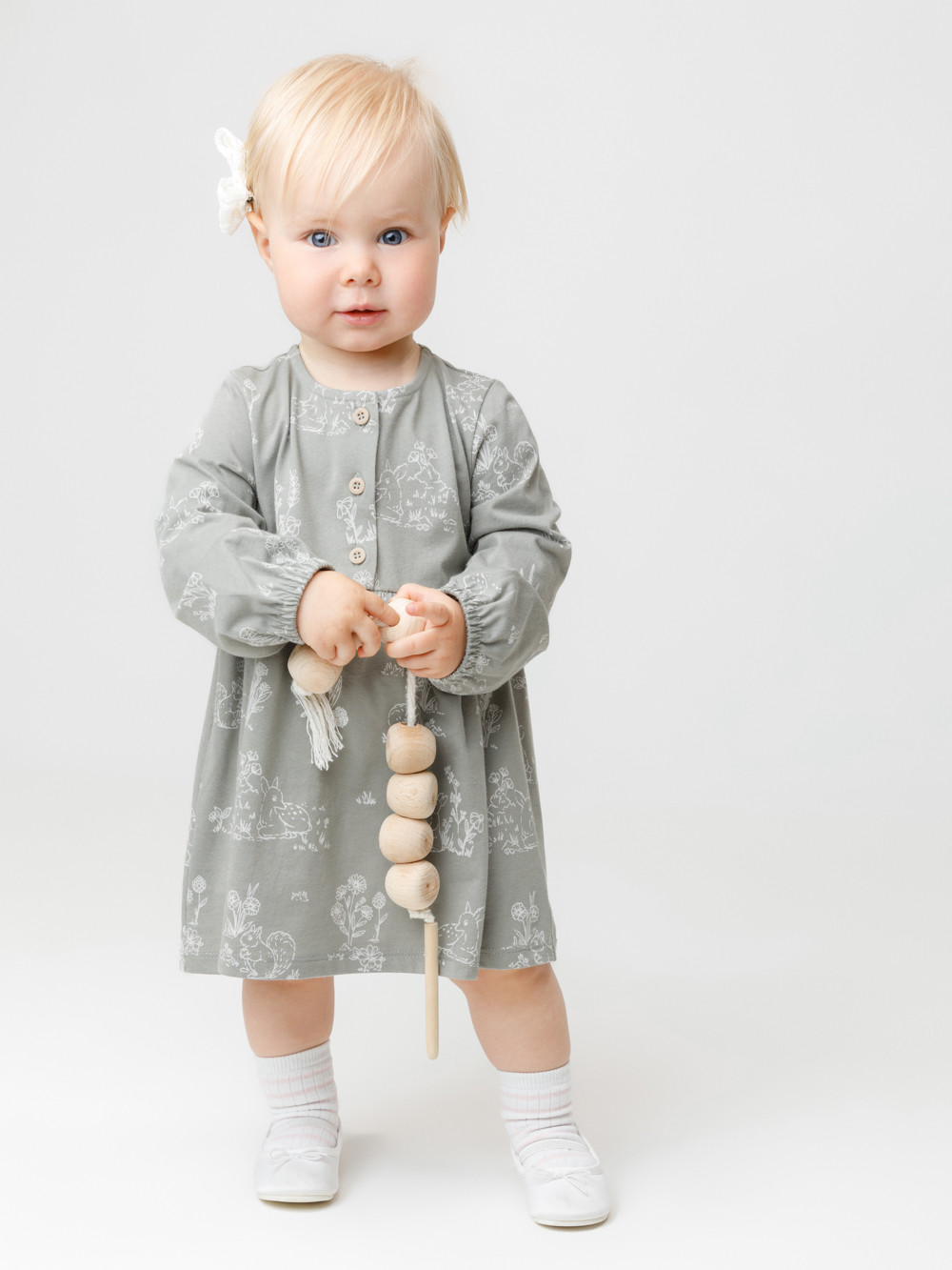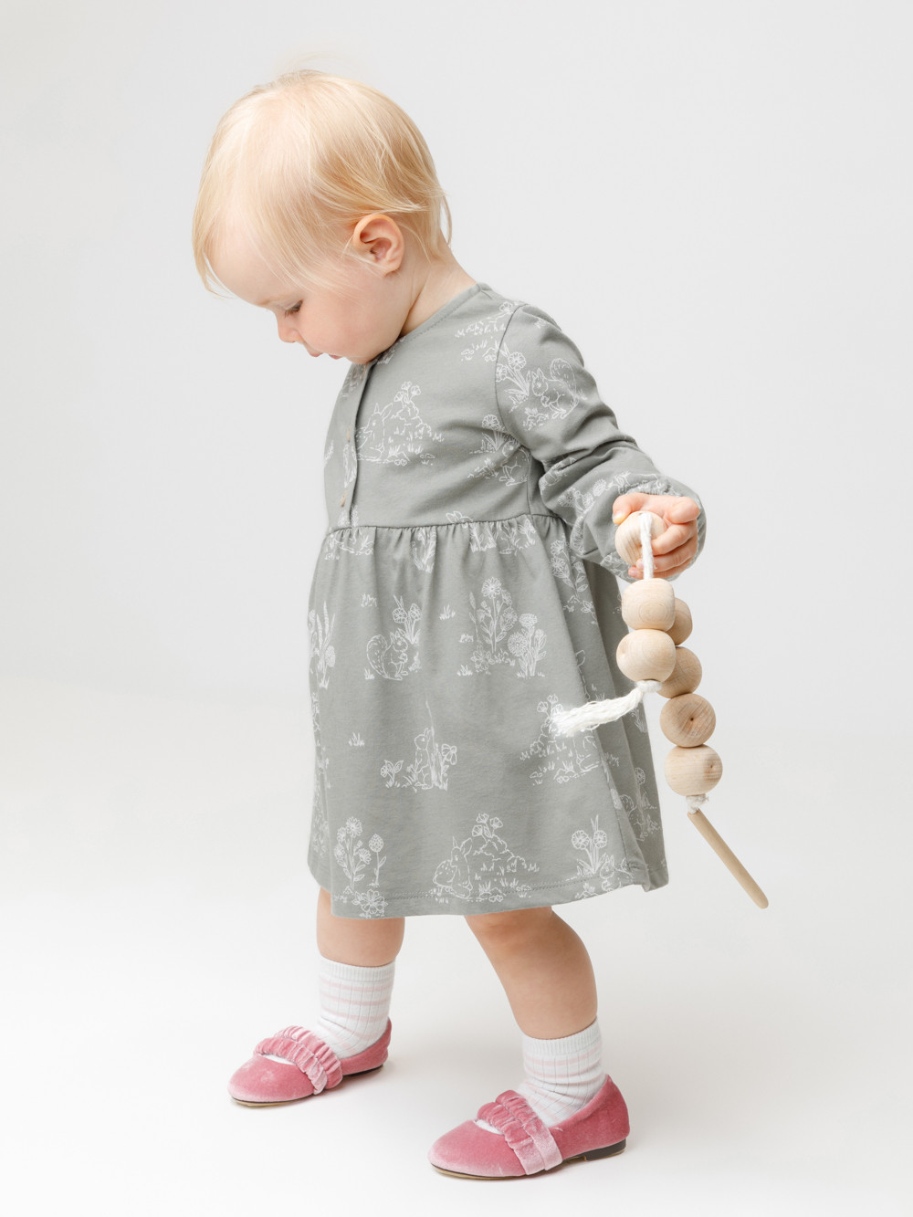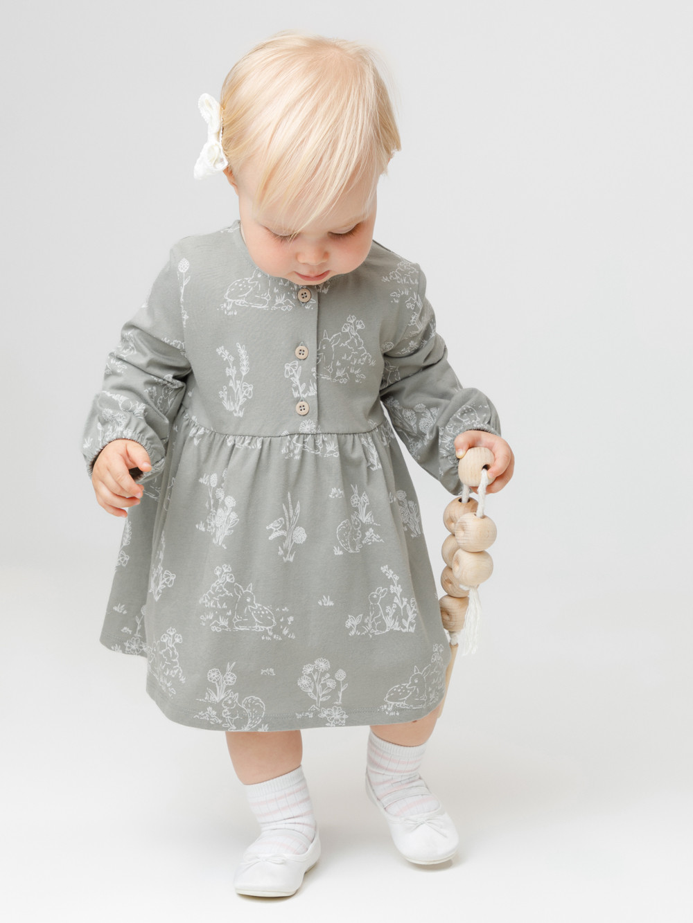 Платье для девочки с длинными рукавами из гладкого хлопкового трикотажа. Для удобства одевания спереди застёгивается на пуговицы. Платье сохраняет форму и стойкий цвет после многочисленных стирок и идеально подходит на каждый день. Все трикотажные полотна производятся в соответствии с нормами швейцарского сертификата ЭкоТекс.