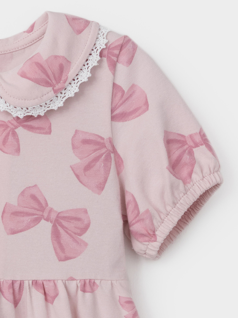 Платье с кружевом для девочки из высококачественного трикотажа. Застёгивается на кнопки спереди. Платье сохраняет форму и стойкий цвет после многочисленных стирок и идеально подходит на каждый день. Все трикотажные полотна производятся в соответствии с нормами швейцарского сертификата ЭкоТекс.