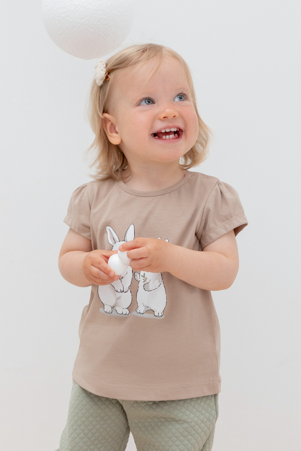 Футболка для девочки из высококачественного трикотажного полотна. Для удобства предусмотрена застежка на 2 кнопки. Оригинальный принт выполнен из стойких текстильных гипоаллергенных красителей.