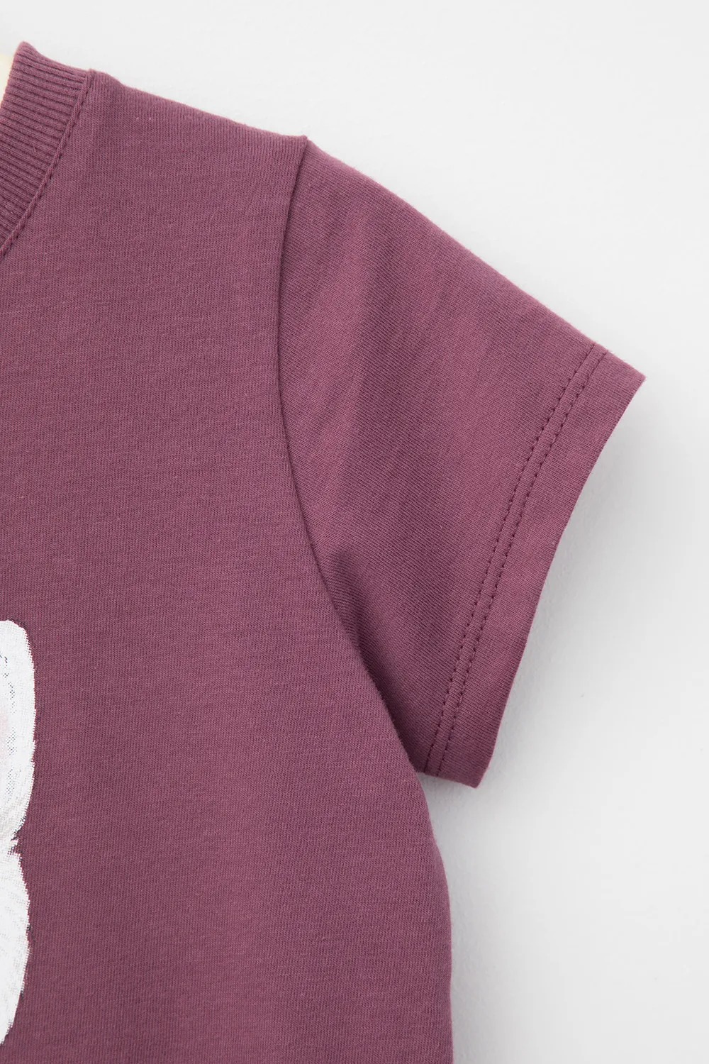 Футболка для девочки из высококачественного трикотажного полотна. Для удобства предусмотрена застежка на 2 кнопки в размерах 92 и 98. Оригинальный принт выполнен из стойких текстильных гипоаллергенных красителей.