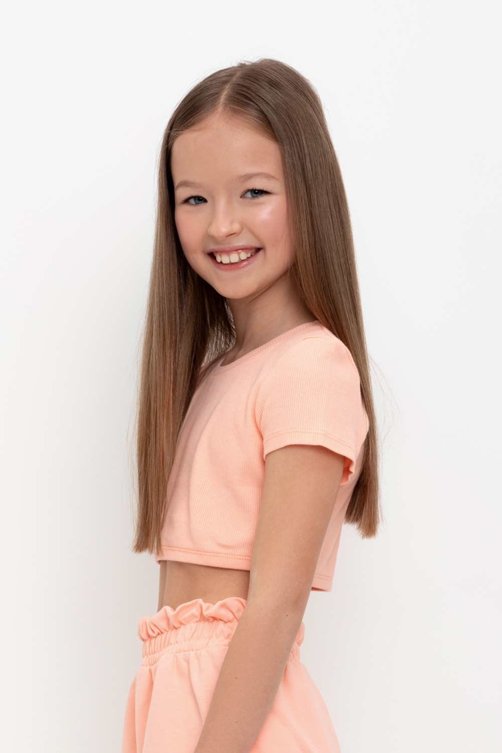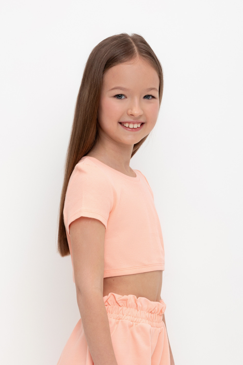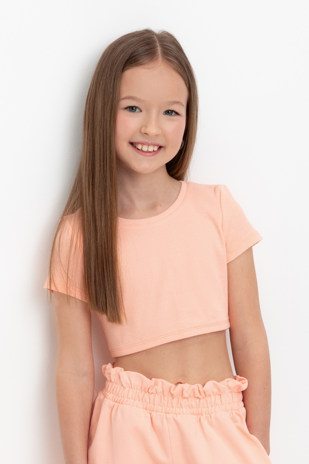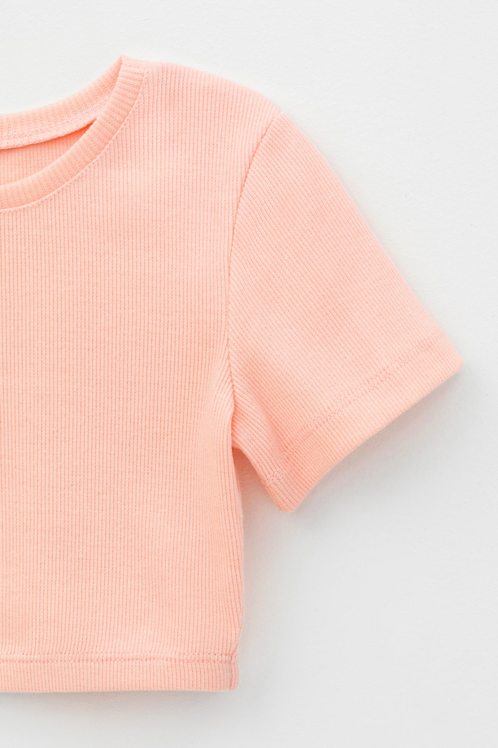 Футболка-топ для девочки из эластичного трикотажа в рубчик.