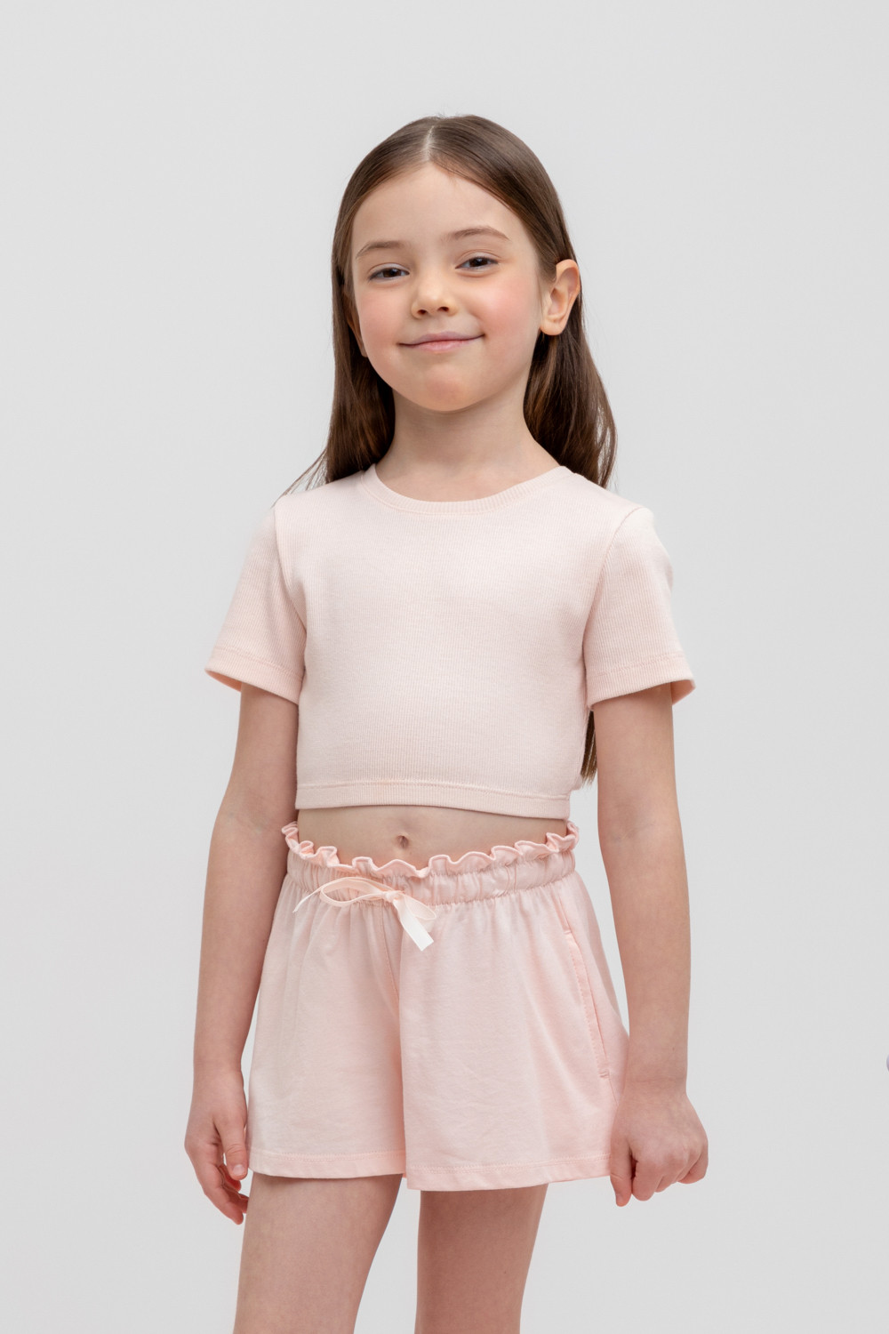 Футболка для девочки из эластичного трикотажа в рубчик.