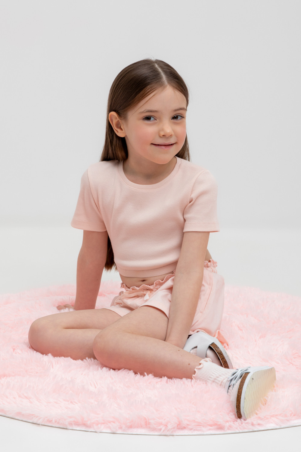 Футболка для девочки из эластичного трикотажа в рубчик.