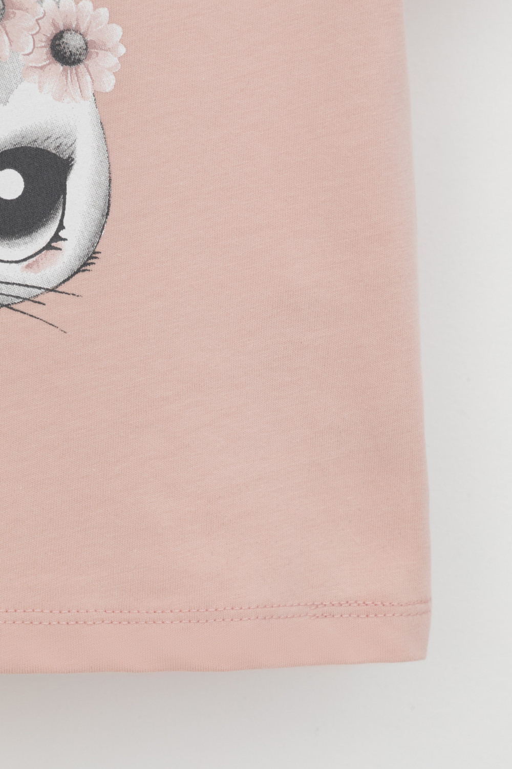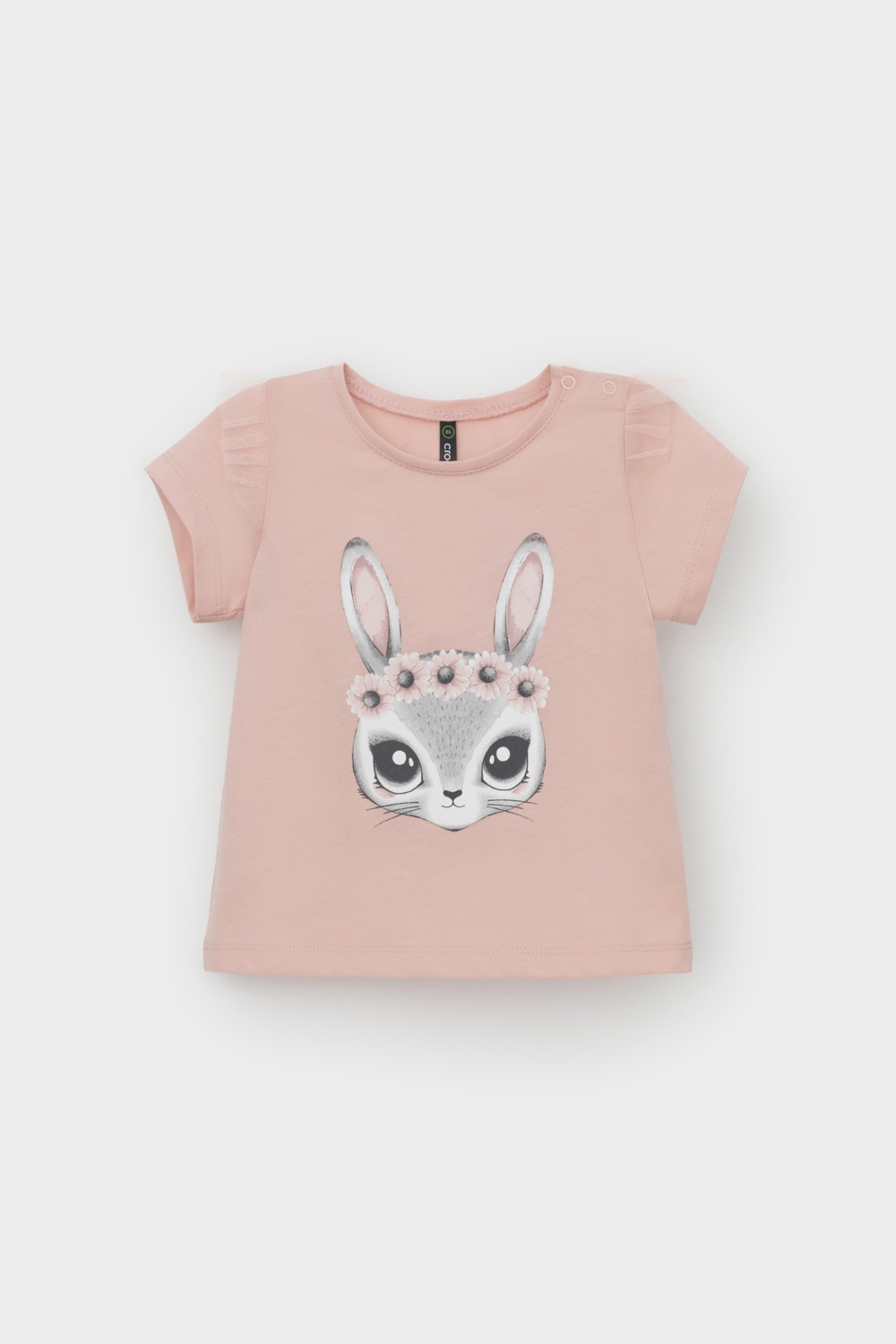 Футболка для девочки из высококачественного трикотажного полотна. Для удобства одевания на плече предусмотрена застежка на кнопки. Оригинальный принт выполнен из стойких текстильных гипоаллергенных красителей.
