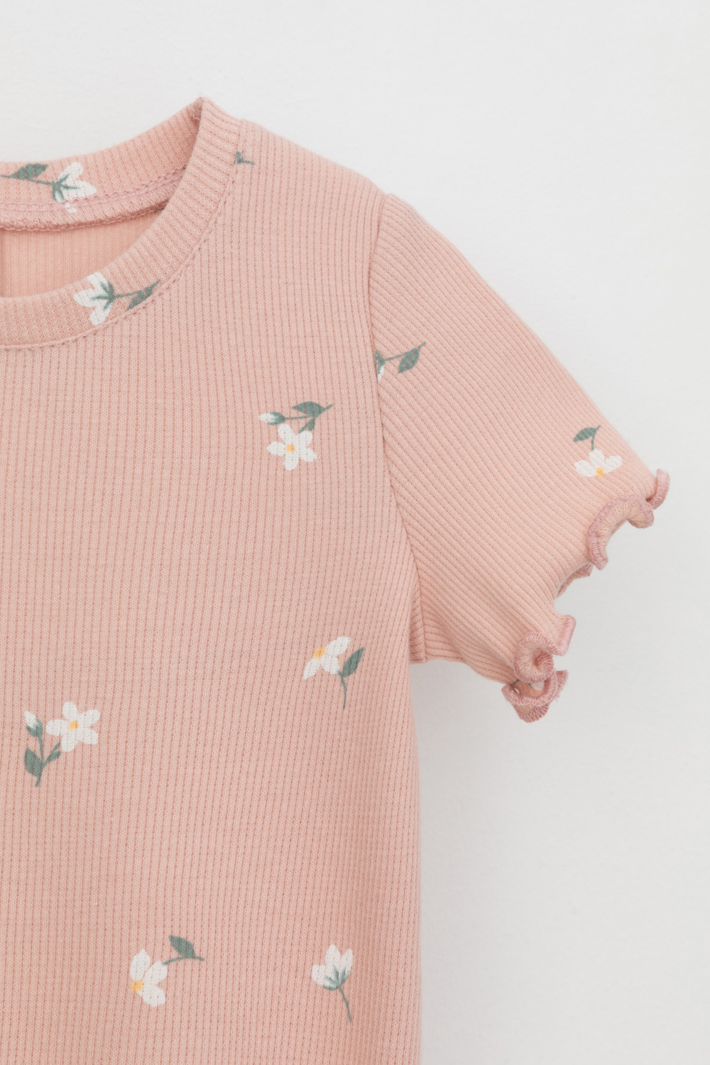 Футболка для девочки из эластичного трикотажа в рубчик. Оригинальная набивка выполнена из стойких текстильных красителей.