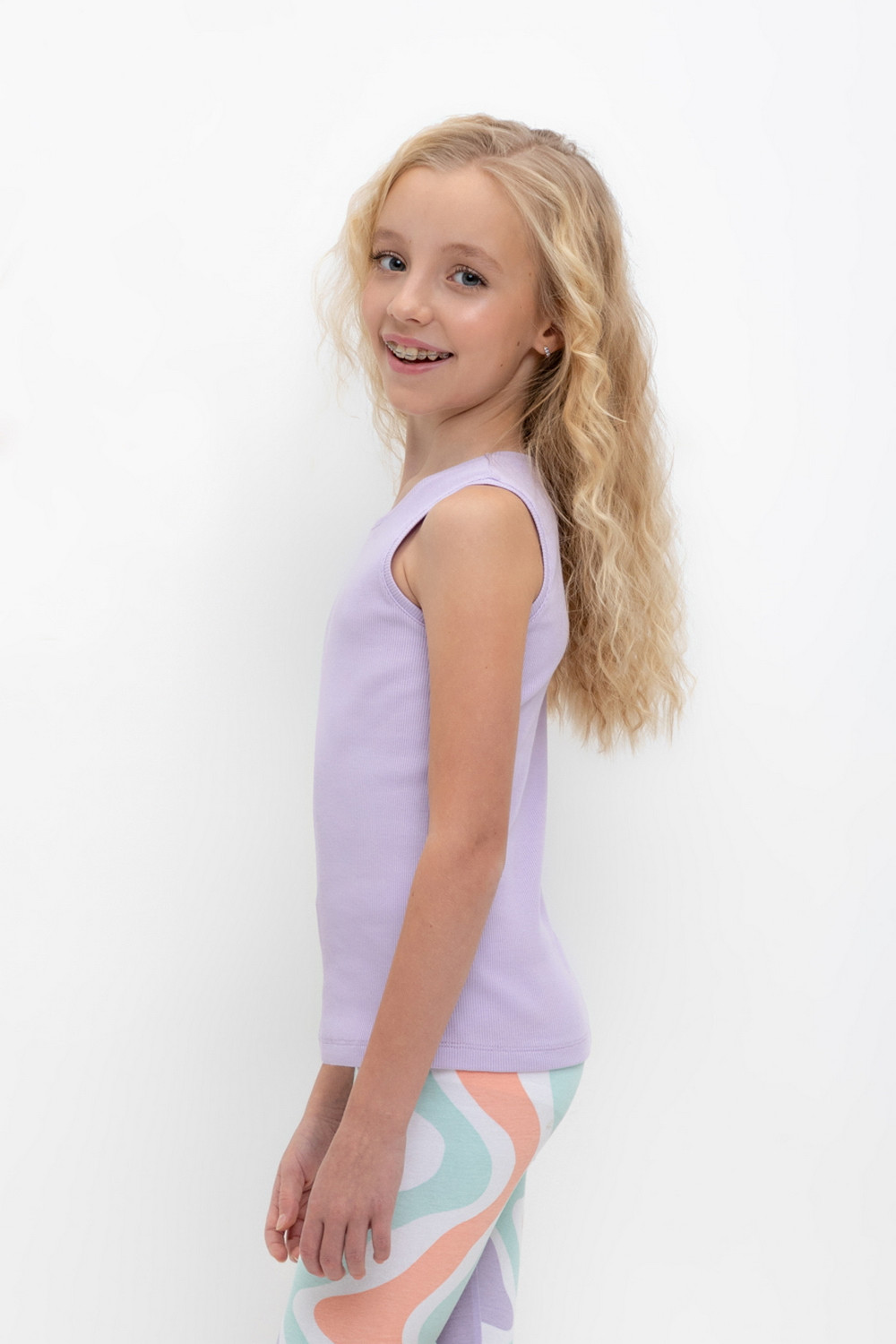 Трикотажная майка для девочки из эластичного полотна в рубчик.