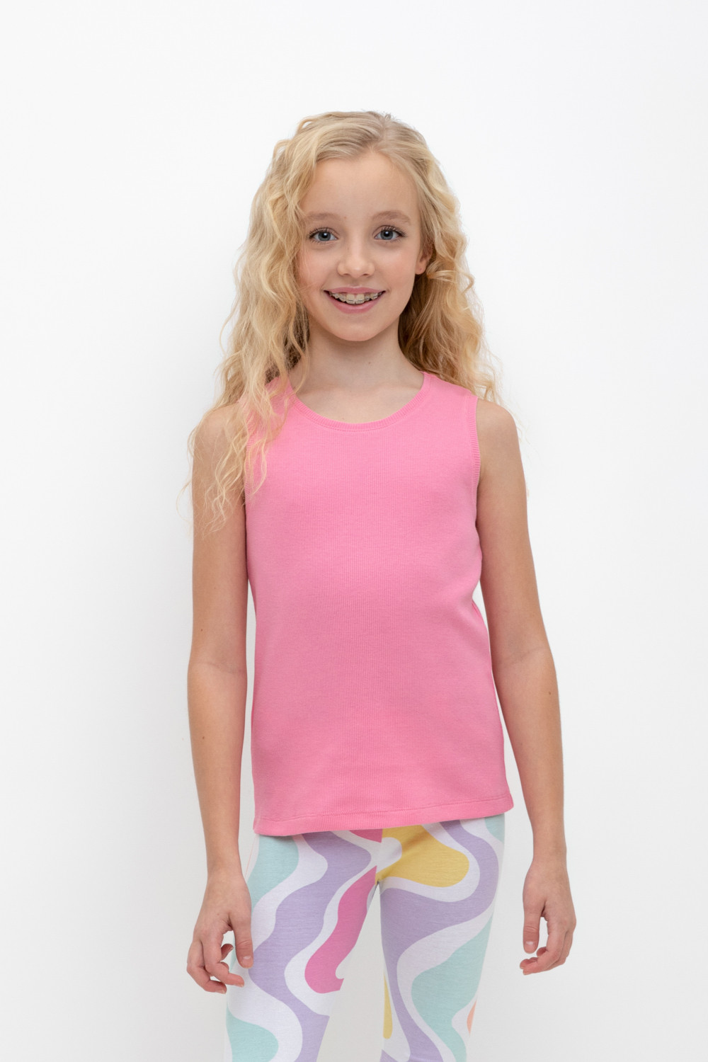 Трикотажная майка для девочки из эластичного полотна в рубчик.