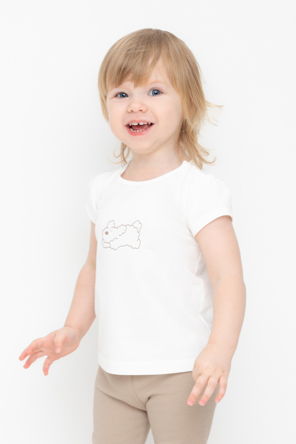 Футболка для девочки из высококачественного трикотажного полотна. Оригинальный принт выполнен из стойких текстильных красителей.
