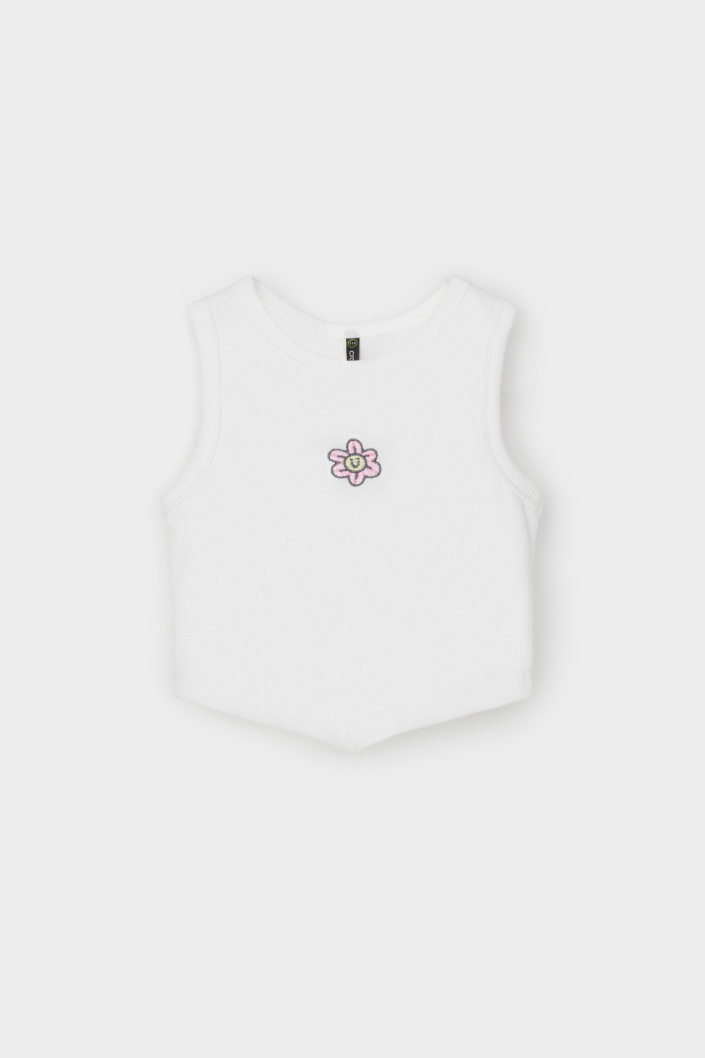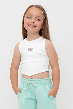 Топ с вышивкой для девочки из эластичного трикотажа в рубчик. Изделие сохраняет цвет и форму после многократных стирок.