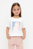 Футболка для девочки из высококачественного трикотажного полотна. Для удобства одевания имеется застежка на кнопки в размерах 92 и 98. Оригинальный принт выполнен из стойких текстильных гипоаллергенных красителей.