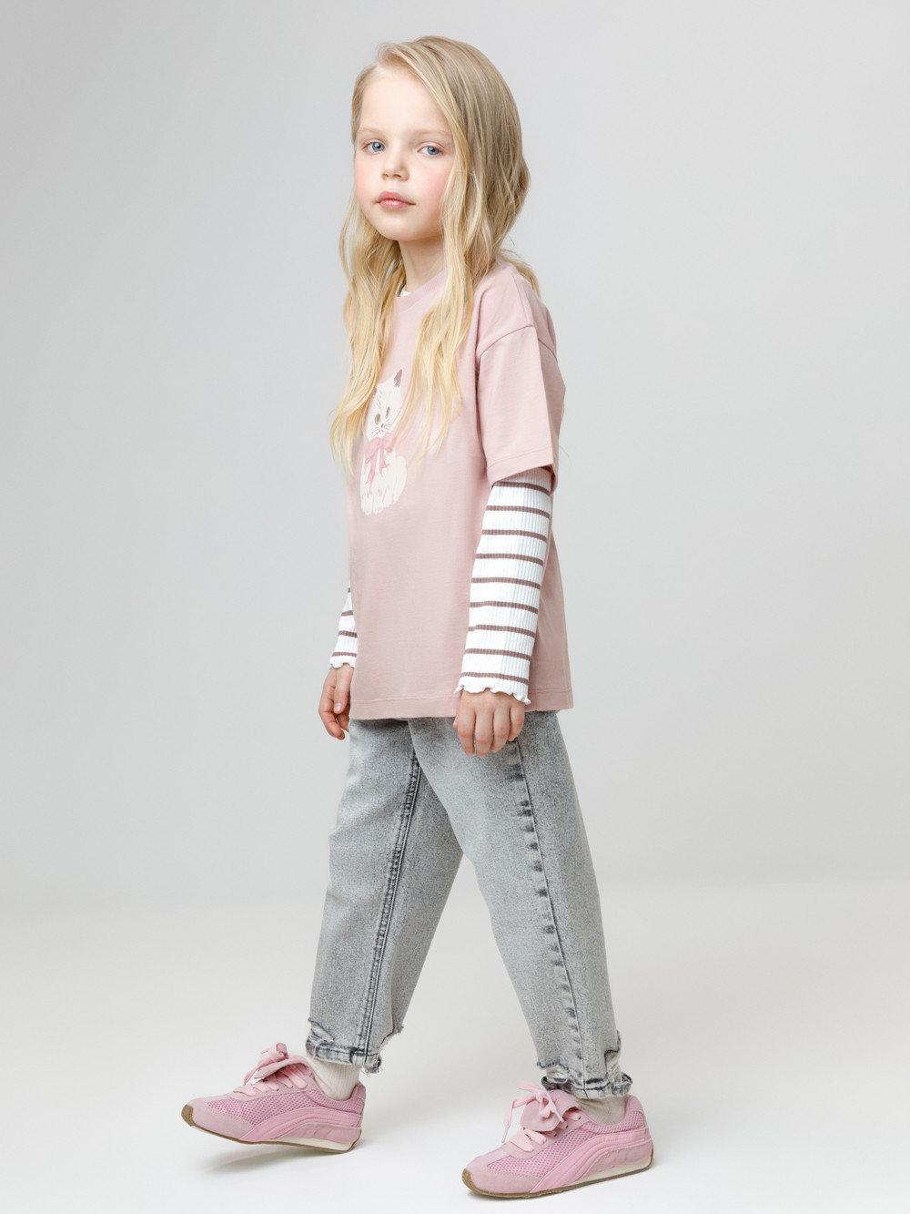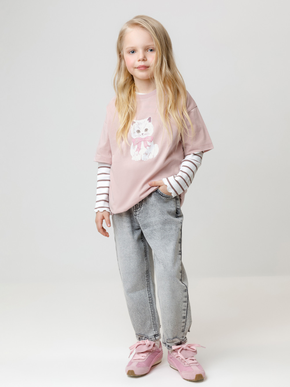 Футболка для девочки из гладкого трикотажа, произведённого из высококачественного натурального хлопка. Для удобства одевания имеется застёжка на кнопки в размерах 92 и 98. Оригинальный принт выполнен из стойких текстильных гипоаллергенных красителей. Изделие сохраняет цвет и форму после многократных стирок. Все трикотажные полотна производятся в соответствии с нормами швейцарского сертификата ЭкоТекс.