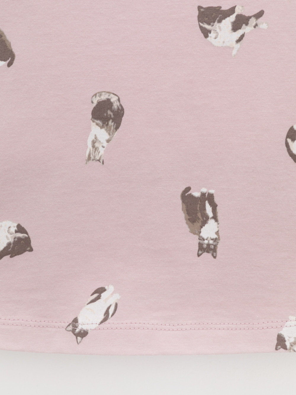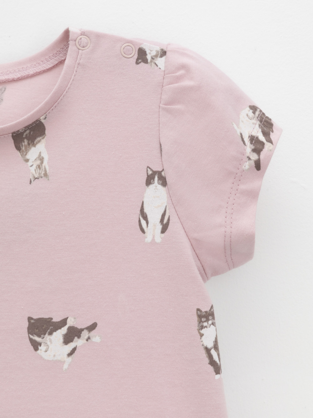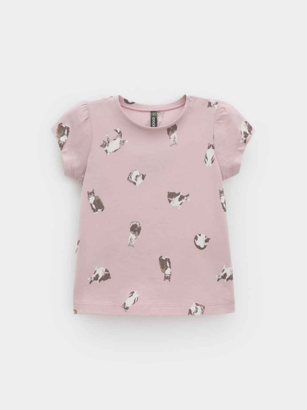 Футболка для девочки из гладкого трикотажа, произведённого из высококачественного натурального хлопка. На плече застёгивается на кнопки. Оригинальный принт выполнен из стойких текстильных гипоаллергенных красителей. Изделие сохраняет цвет и форму после многократных стирок. Все трикотажные полотна производятся в соответствии с нормами швейцарского сертификата ЭкоТекс.