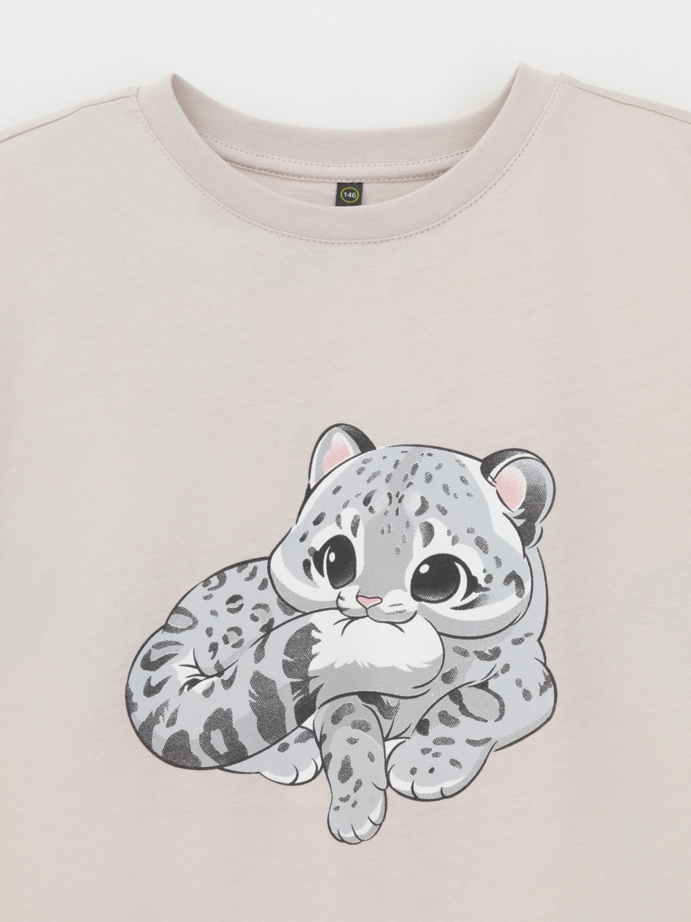 Футболка для девочки из гладкого трикотажа, произведённого из высококачественного натурального хлопка. Оригинальный принт выполнен из стойких текстильных гипоаллергенных красителей. Изделие сохраняет цвет и форму после многократных стирок. Все трикотажные полотна производятся в соответствии с нормами швейцарского сертификата ЭкоТекс.