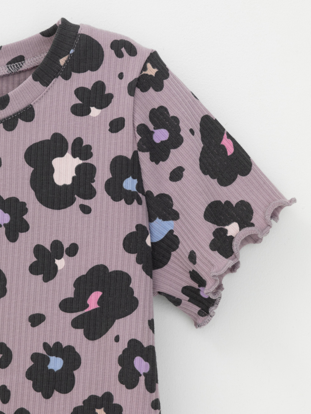 Футболка из эластичного трикотажа в рубчик для девочки. Оригинальный рисунок выполнен из стойких текстильных гипоаллергенных красителей. Изделие сохраняет цвет и форму после многократных стирок. Все трикотажные полотна производятся в соответствии с нормами швейцарского сертификата ЭкоТекс.