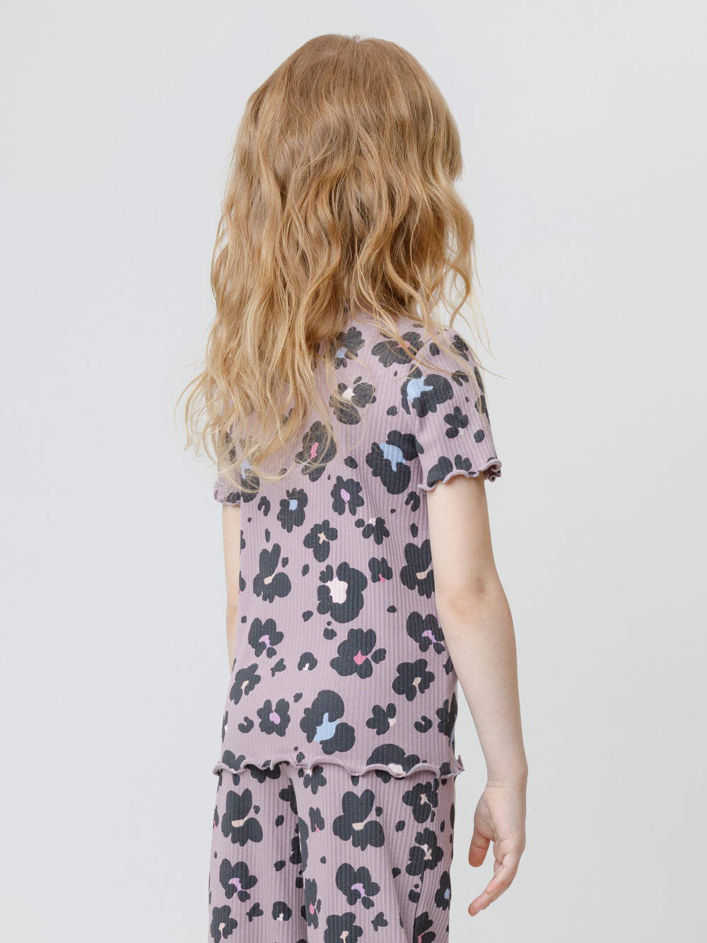 Футболка из эластичного трикотажа в рубчик для девочки. Оригинальный рисунок выполнен из стойких текстильных гипоаллергенных красителей. Изделие сохраняет цвет и форму после многократных стирок. Все трикотажные полотна производятся в соответствии с нормами швейцарского сертификата ЭкоТекс.