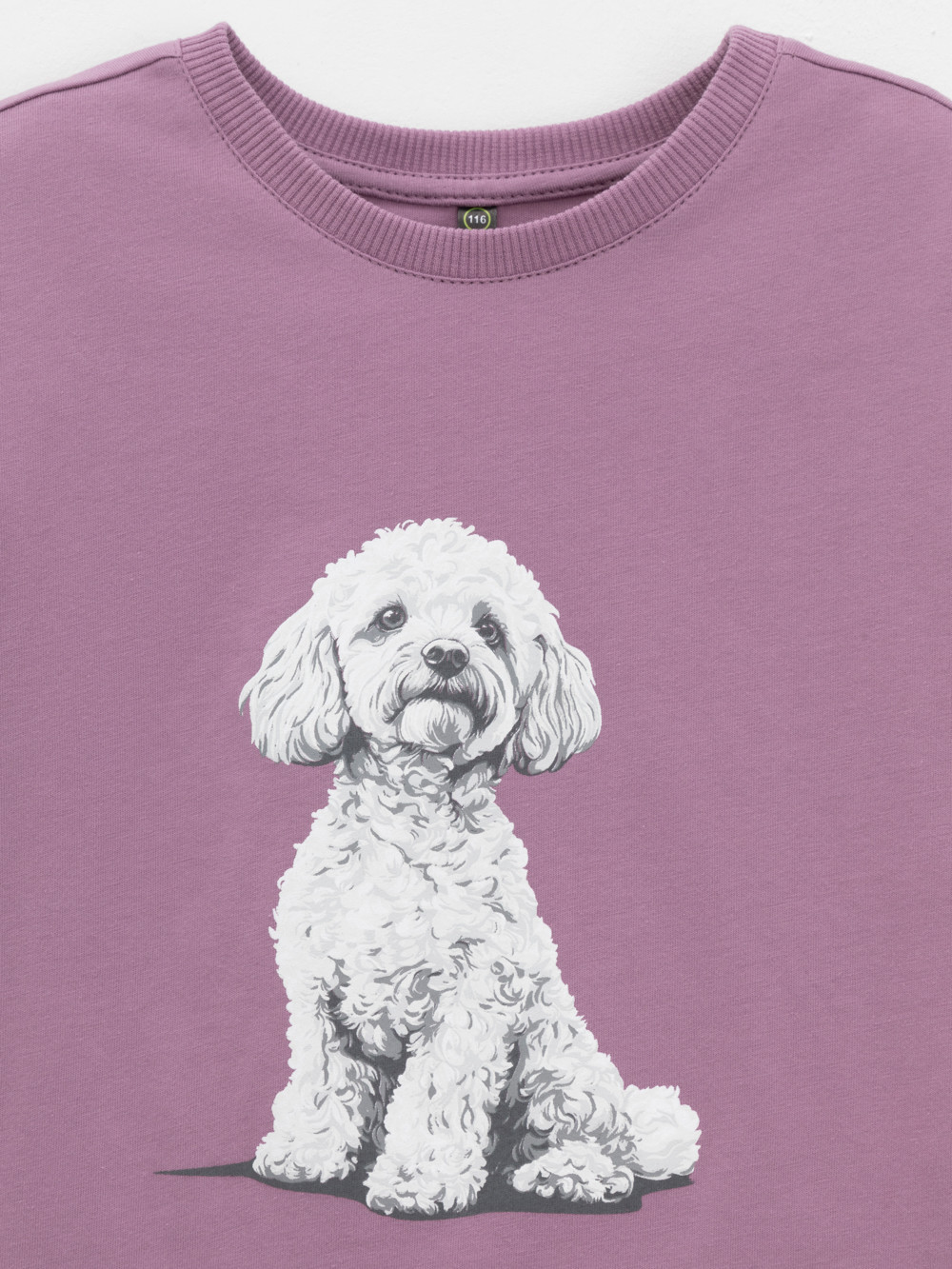 Футболка для девочки из гладкого трикотажа, произведённого из высококачественного натурального хлопка. В 92 и 98 размерах на спине для удобства при одевании застёгивается на кнопки. Оригинальный принт выполнен из стойких текстильных гипоаллергенных красителей. Изделие сохраняет цвет и форму после многократных стирок. Все трикотажные полотна производятся в соответствии с нормами швейцарского сертификата ЭкоТекс.