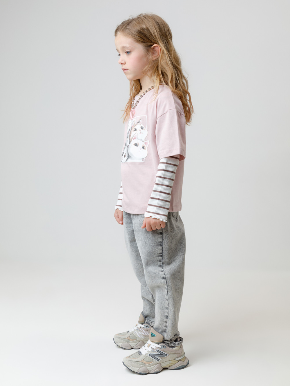 Футболка для девочки из гладкого трикотажа, произведённого из высококачественного натурального хлопка. В 92 и 98 размерах для удобства при одевании застёгивается на кнопки. Оригинальный принт выполнен из стойких текстильных гипоаллергенных красителей. Изделие сохраняет цвет и форму после многократных стирок. Все трикотажные полотна производятся в соответствии с нормами швейцарского сертификата ЭкоТекс.
