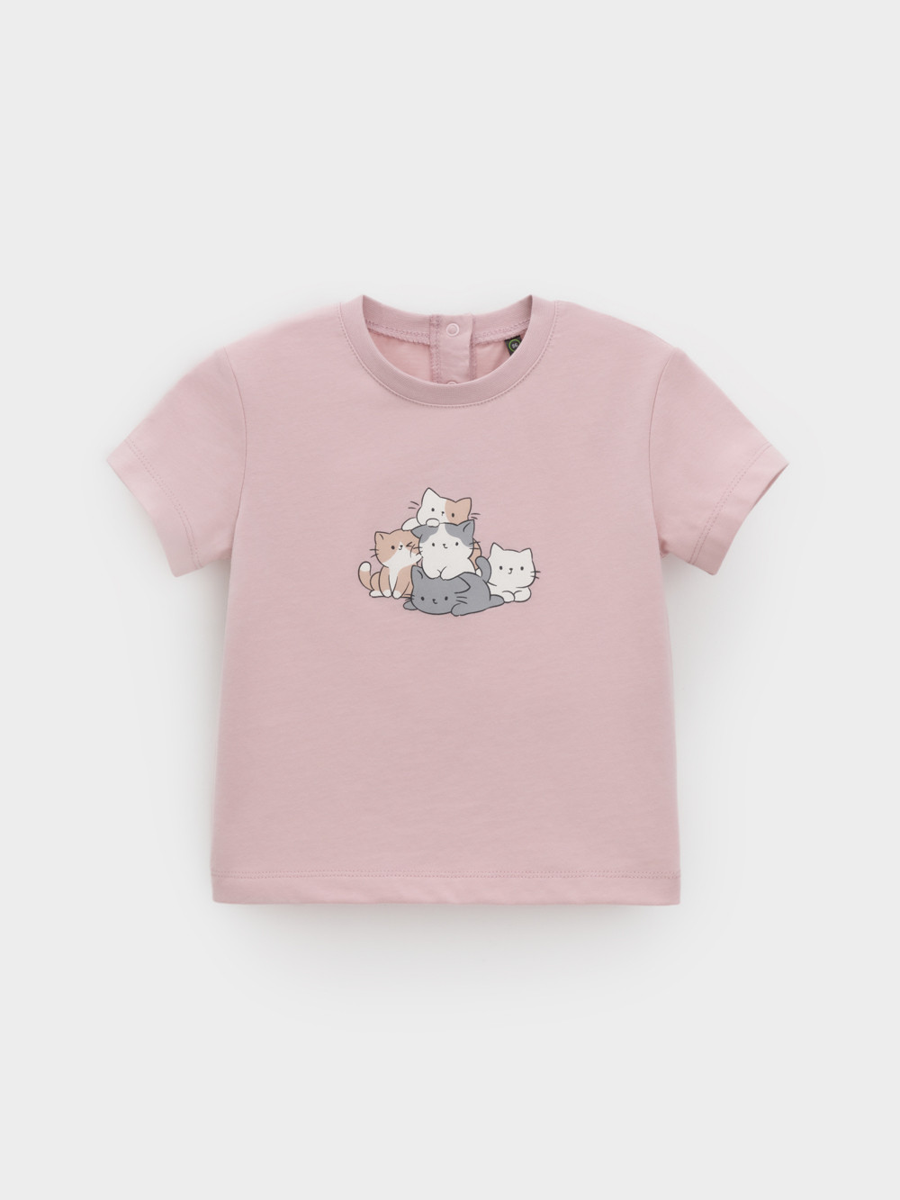 Футболка для девочки из гладкого трикотажа, произведённого из высококачественного натурального хлопка. Застёгивается на спинке на планку с кнопками. Оригинальный принт выполнен из стойких текстильных гипоаллергенных красителей. Изделие сохраняет цвет и форму после многократных стирок. Все трикотажные полотна производятся в соответствии с нормами швейцарского сертификата ЭкоТекс.