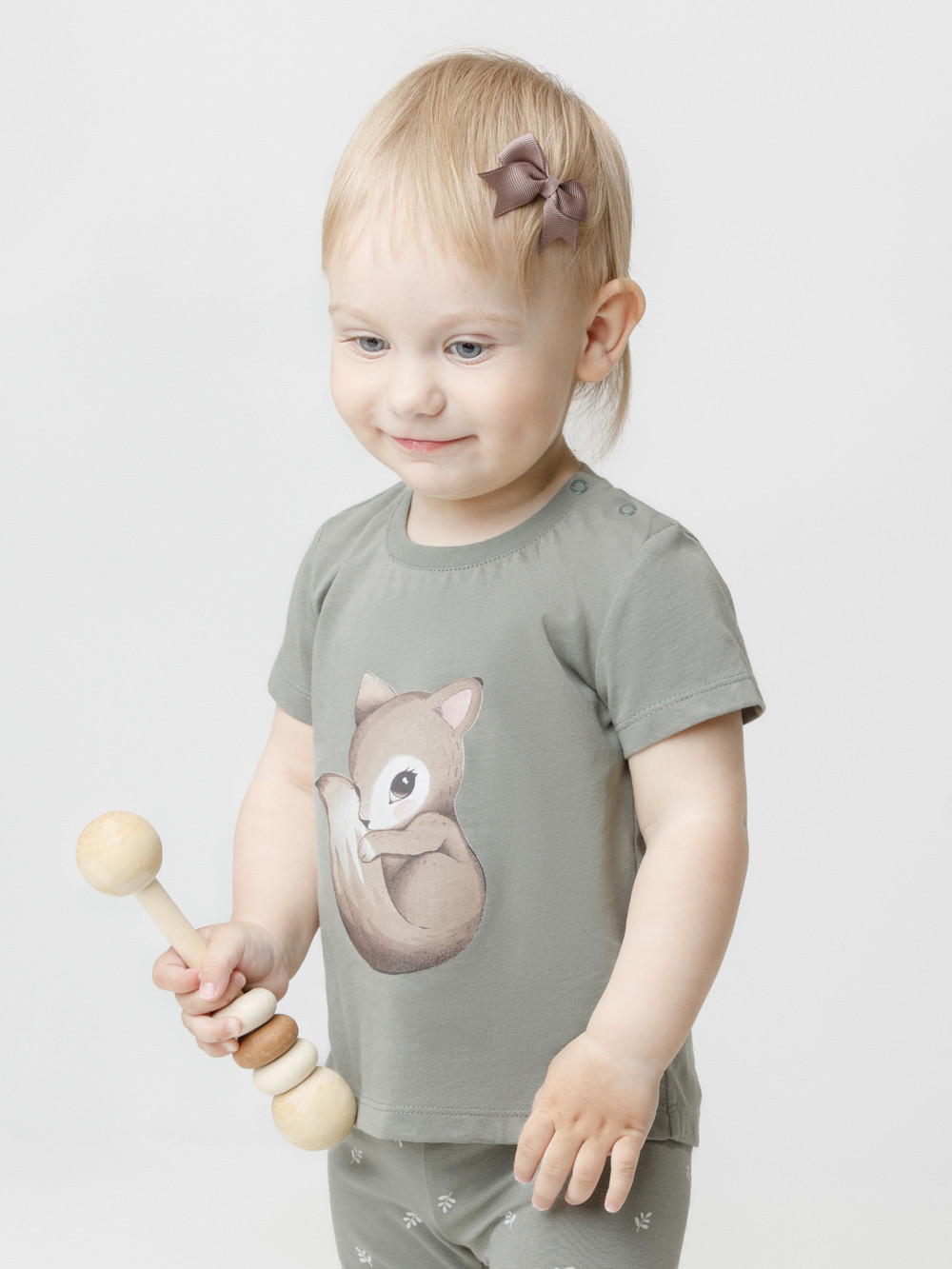 Футболка для девочки из гладкого трикотажа, произведённого из высококачественного натурального хлопка. Застёгивается на кнопки. Оригинальный принт выполнен из стойких текстильных гипоаллергенных красителей. Изделие сохраняет цвет и форму после многократных стирок. Все трикотажные полотна производятся в соответствии с нормами швейцарского сертификата ЭкоТекс.