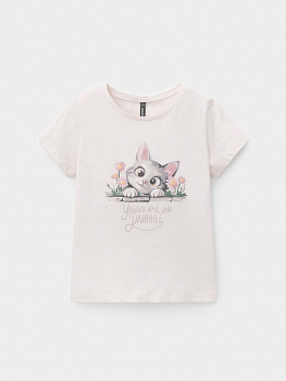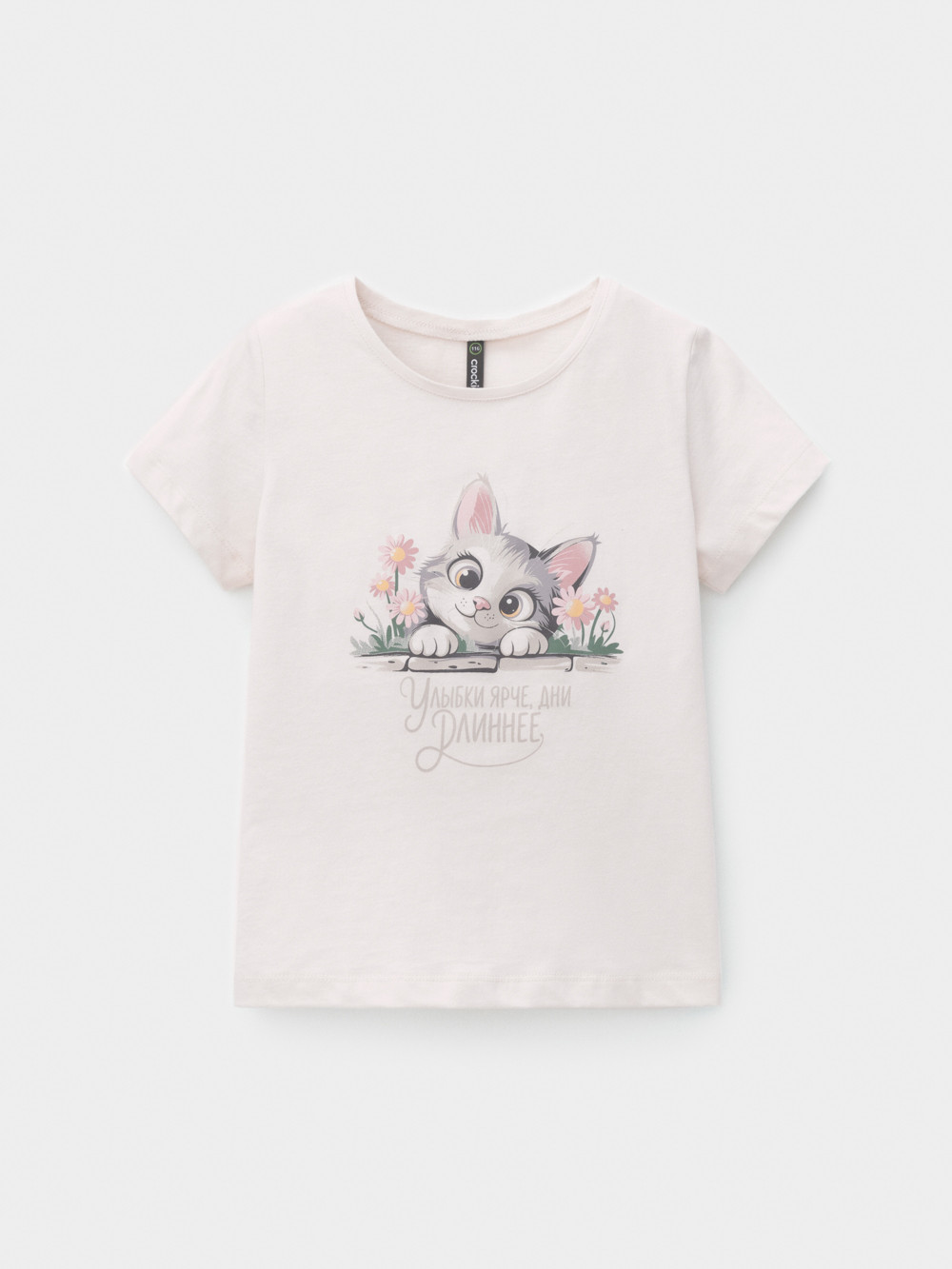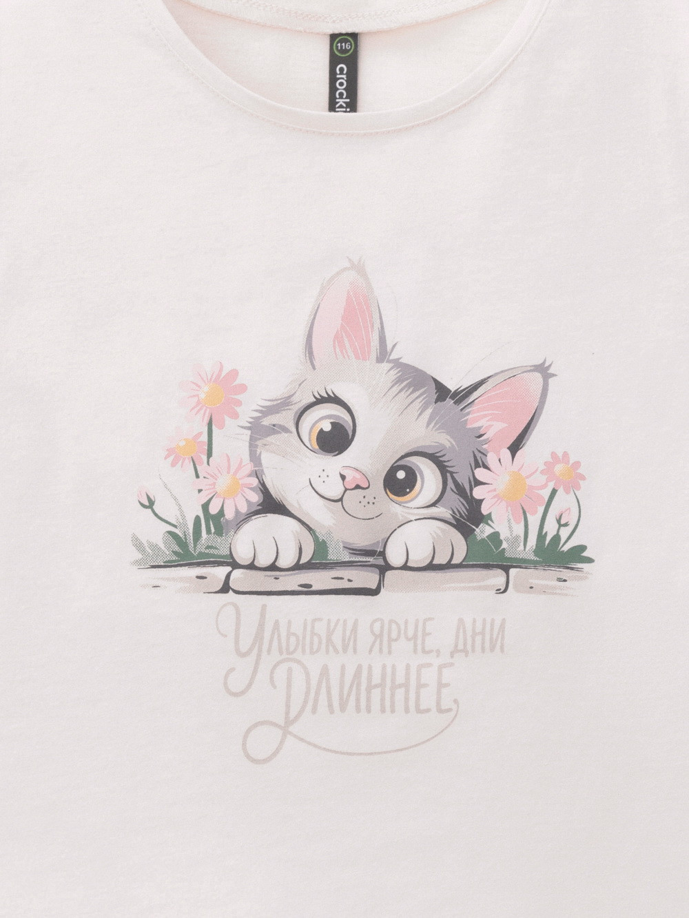 Футболка для девочки из высококачественного трикотажного полотна. Оригинальный рисунок выполнен из стойких текстильных гипоаллергенных красителей. Изделие сохраняет цвет и форму после многократных стирок. Все трикотажные полотна производятся в соответствии с нормами швейцарского сертификата ЭкоТекс.