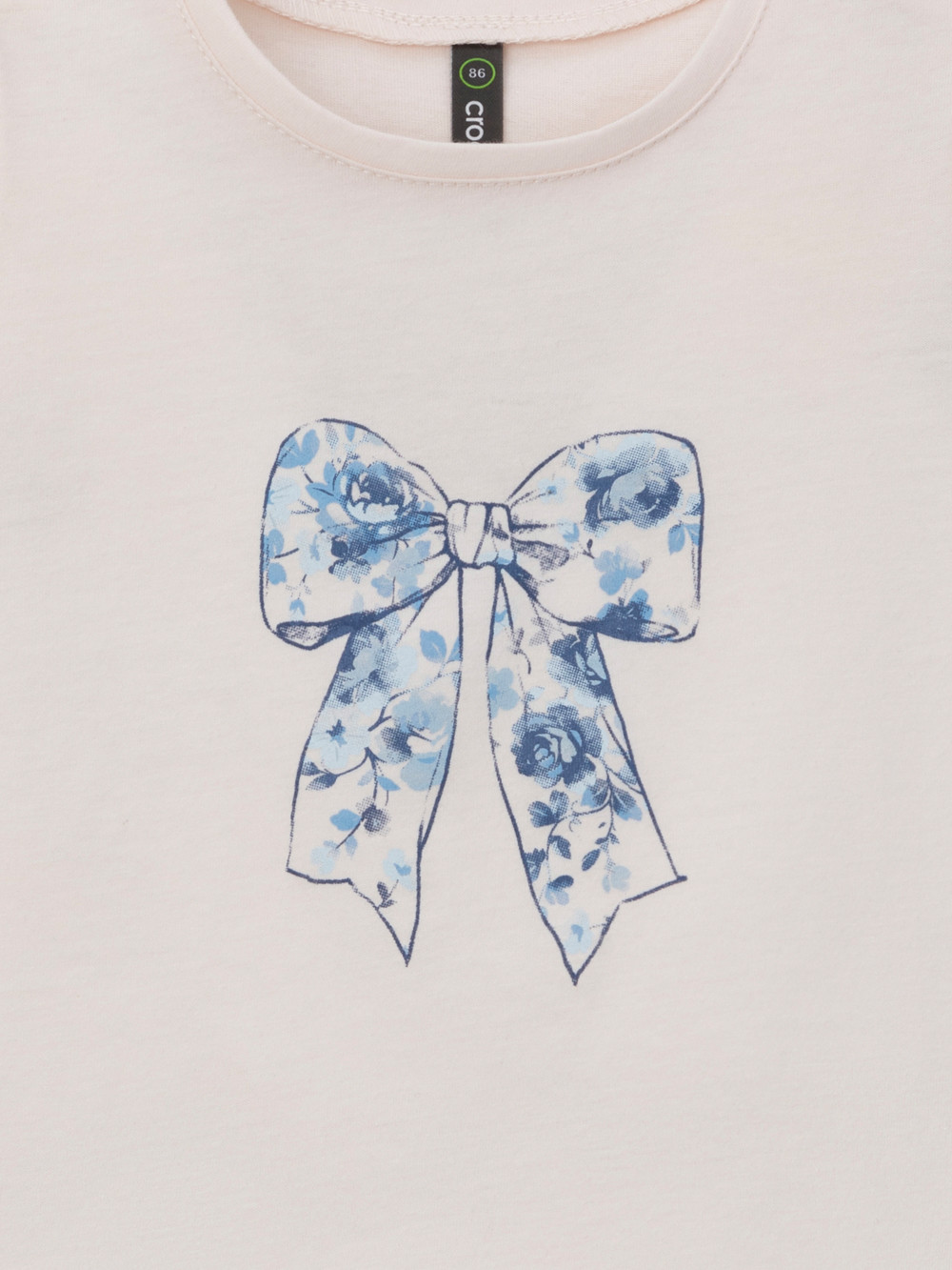 Футболка для девочки из высококачественного трикотажного полотна. Застёгивается на плече на кнопки. Оригинальный принт выполнен из стойких текстильных гипоаллергенных красителей. Изделие сохраняет цвет и форму после многократных стирок. Все трикотажные полотна производятся в соответствии с нормами швейцарского сертификата ЭкоТекс.