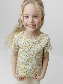 Футболка для девочки из эластичного трикотажного полотна в рубчик. Изделие сохраняет цвет и форму после многократных стирок. Все трикотажные полотна производятся в соответствии с нормами швейцарского сертификата ЭкоТекс.