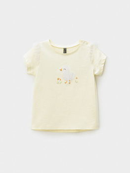 Футболка для девочки из высококачественного трикотажного полотна. Застёгивается на плече на кнопки. Оригинальный принт выполнен из стойких текстильных гипоаллергенных красителей. Изделие сохраняет цвет и форму после многократных стирок. Все трикотажные полотна производятся в соответствии с нормами швейцарского сертификата ЭкоТекс.