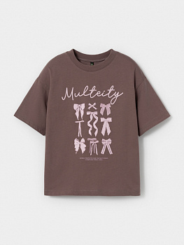 Футболка для девочки с короткими спущенными рукавами. Изготовлена из гладкого трикотажа супрем, который произведён из 100% натурального хлопка высокого качества. Оригинальный принт выполнен из стойких текстильных гипоаллергенных красителей. Изделие сохраняет цвет и форму после многократных стирок. Все трикотажные полотна производятся в соответствии с нормами швейцарского сертификата ЭкоТекс.