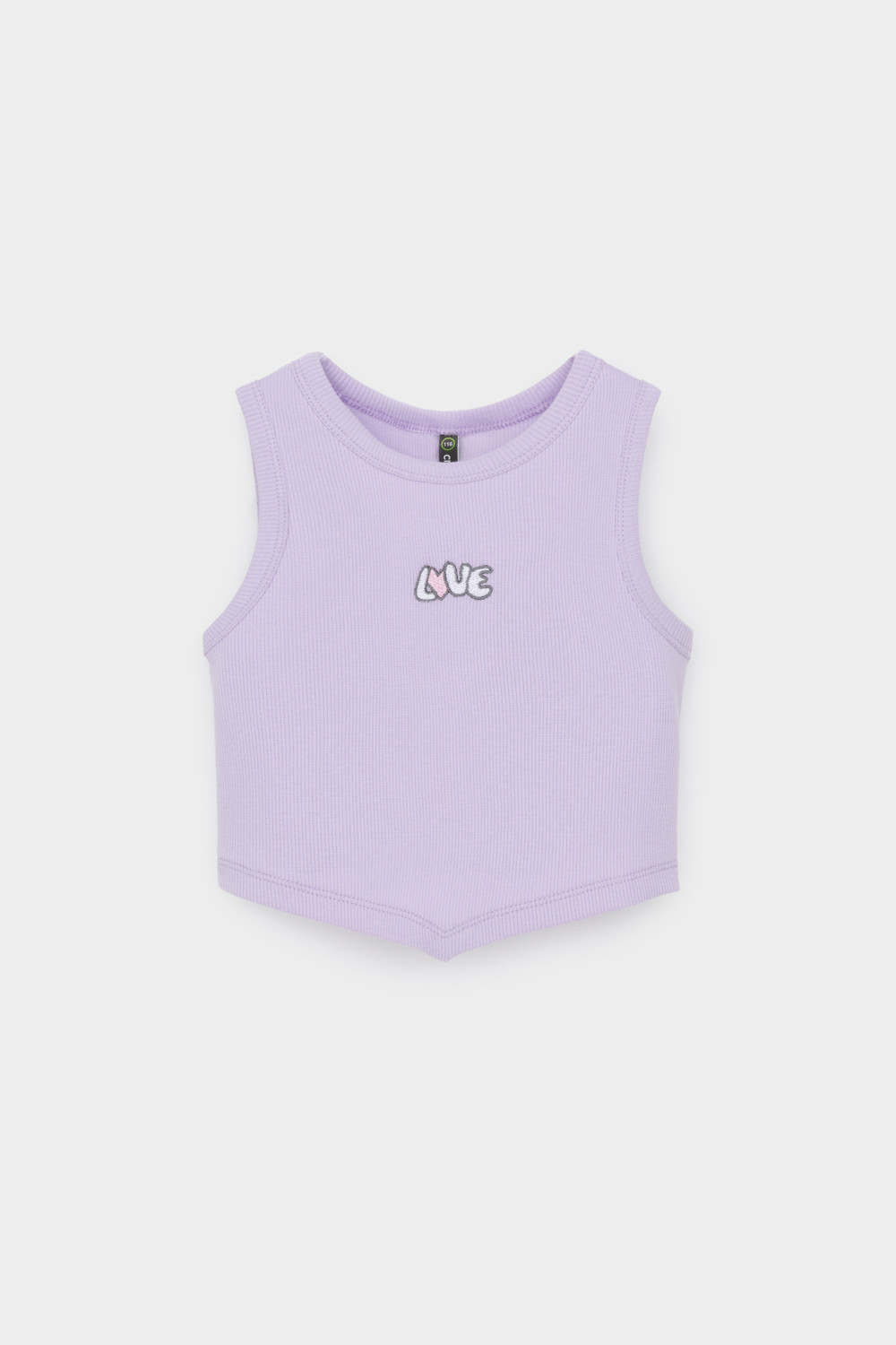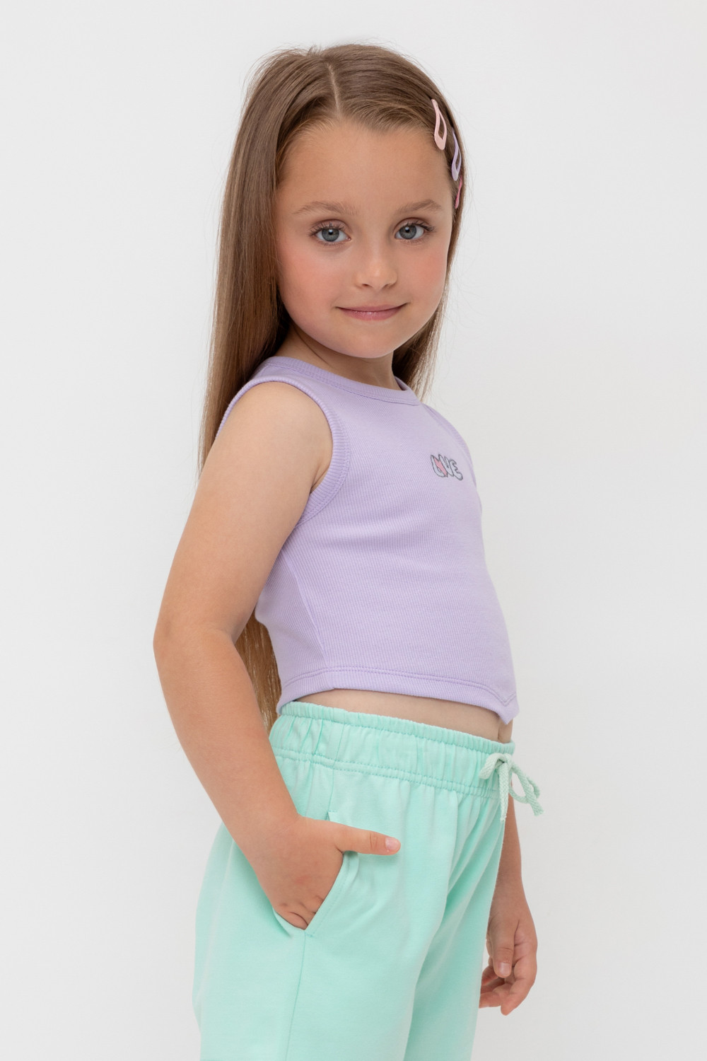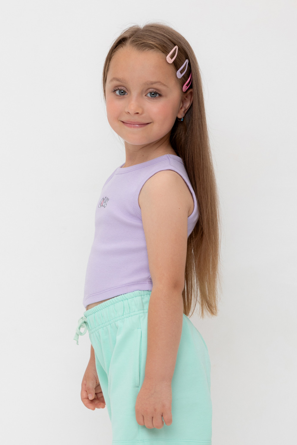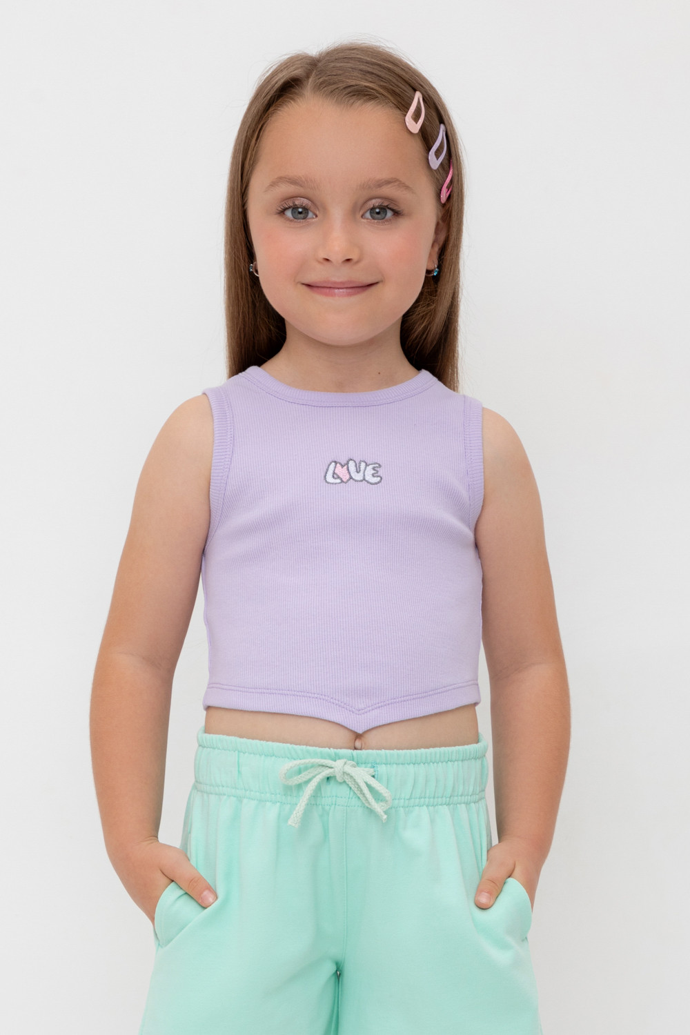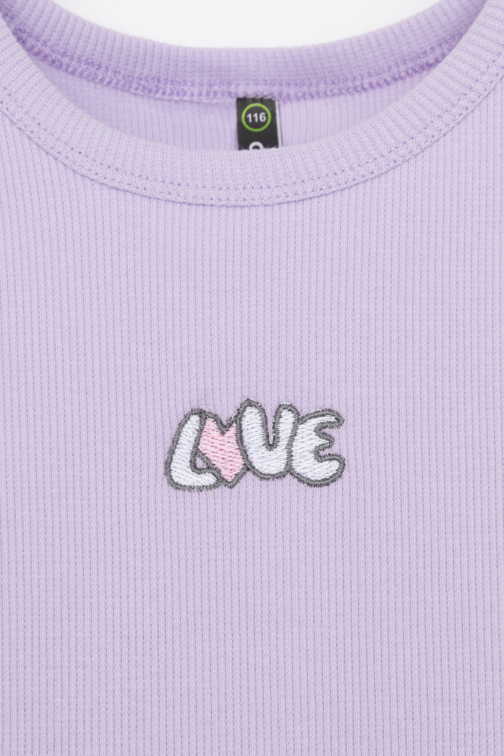Топ с вышивкой для девочки из эластичного трикотажа в рубчик. Изделие сохраняет цвет и форму после многократных стирок.