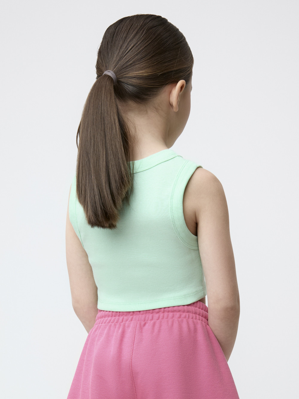 Топ для девочки из высококачественного эластичного трикотажа в рубчик. Изделие сохраняет форму и стойкий цвет после многочисленных стирок и идеально подходит на каждый день. Все трикотажные полотна производятся в соответствии с нормами швейцарского сертификата ЭкоТекс.