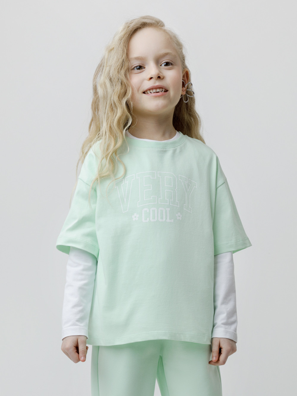 Футболка для девочки из высококачественного трикотажного полотна. Оригинальный принт выполнен из стойких текстильных гипоаллергенных красителей. Изделие сохраняет цвет и форму после многократных стирок. Все трикотажные полотна производятся в соответствии с нормами швейцарского сертификата ЭкоТекс.