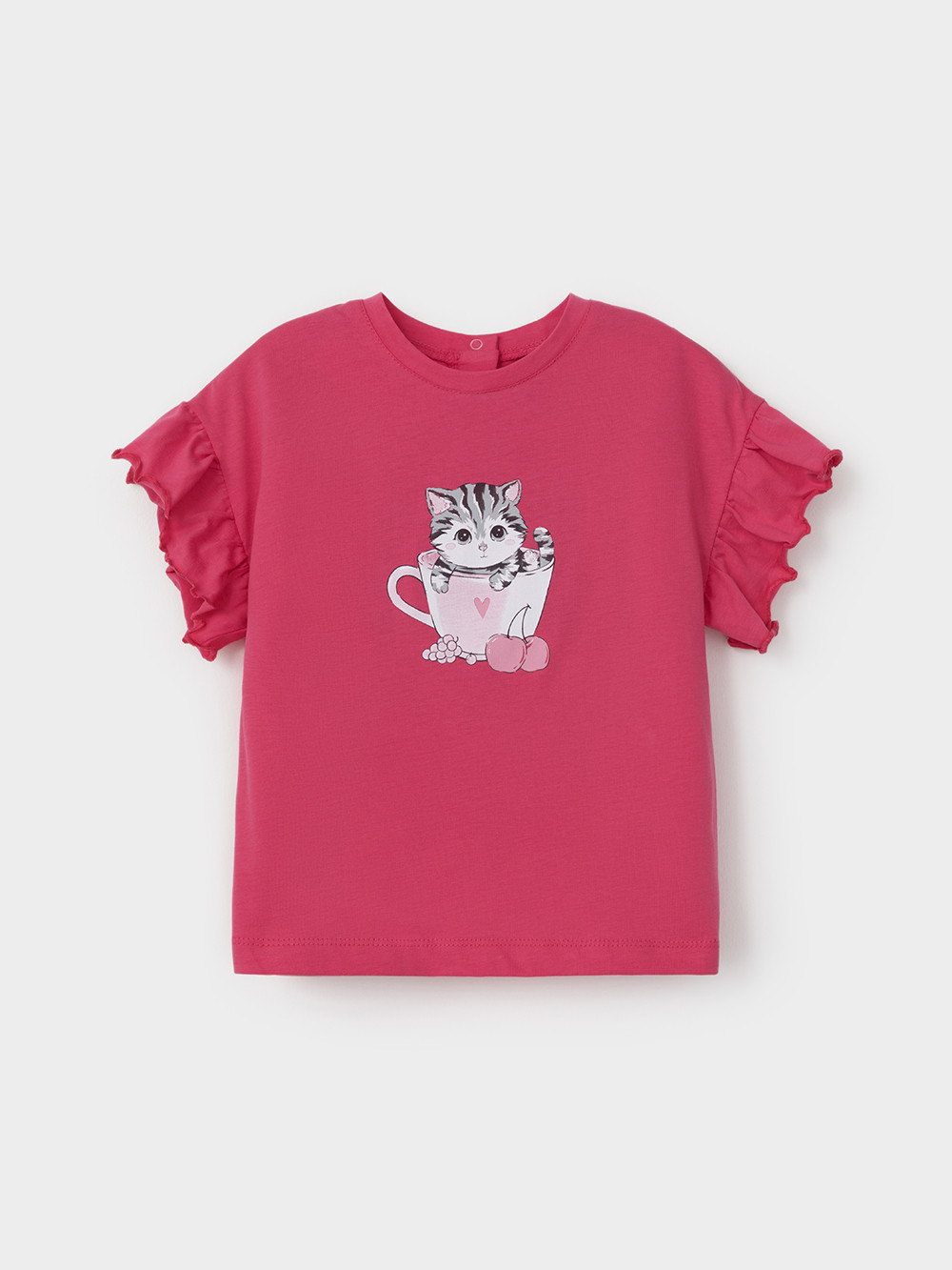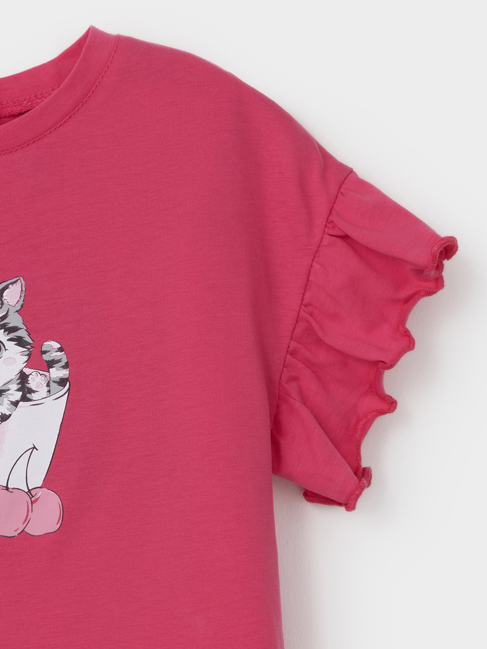 Футболка для девочки с нарядными рюшами из высококачественного трикотажного полотна, изготовленного из натурального хлопка. Изделие сохраняет цвет и форму после многократных стирок. Все трикотажные полотна производятся в соответствии с нормами швейцарского сертификата ЭкоТекс.