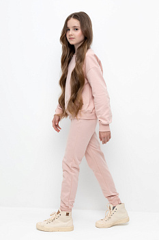 Трикотажные брюки для девочки из петельчатого футера. Эластичный пояс на резинке регулируется по ширине с помощью шнурка, внизу эластичные манжеты.