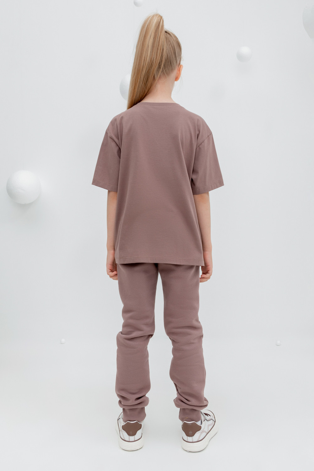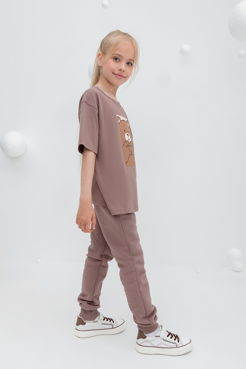 Трикотажные брюки для девочки из футера с начёсом. В составе 80% натурального хлопка и 20% полиэстера, при этом полиэстер ввязан внутрь по особой технологии и не соприкасается с кожей. Эластичный пояс на резинке, по бокам два удобных кармана, внизу эластичные манжеты.