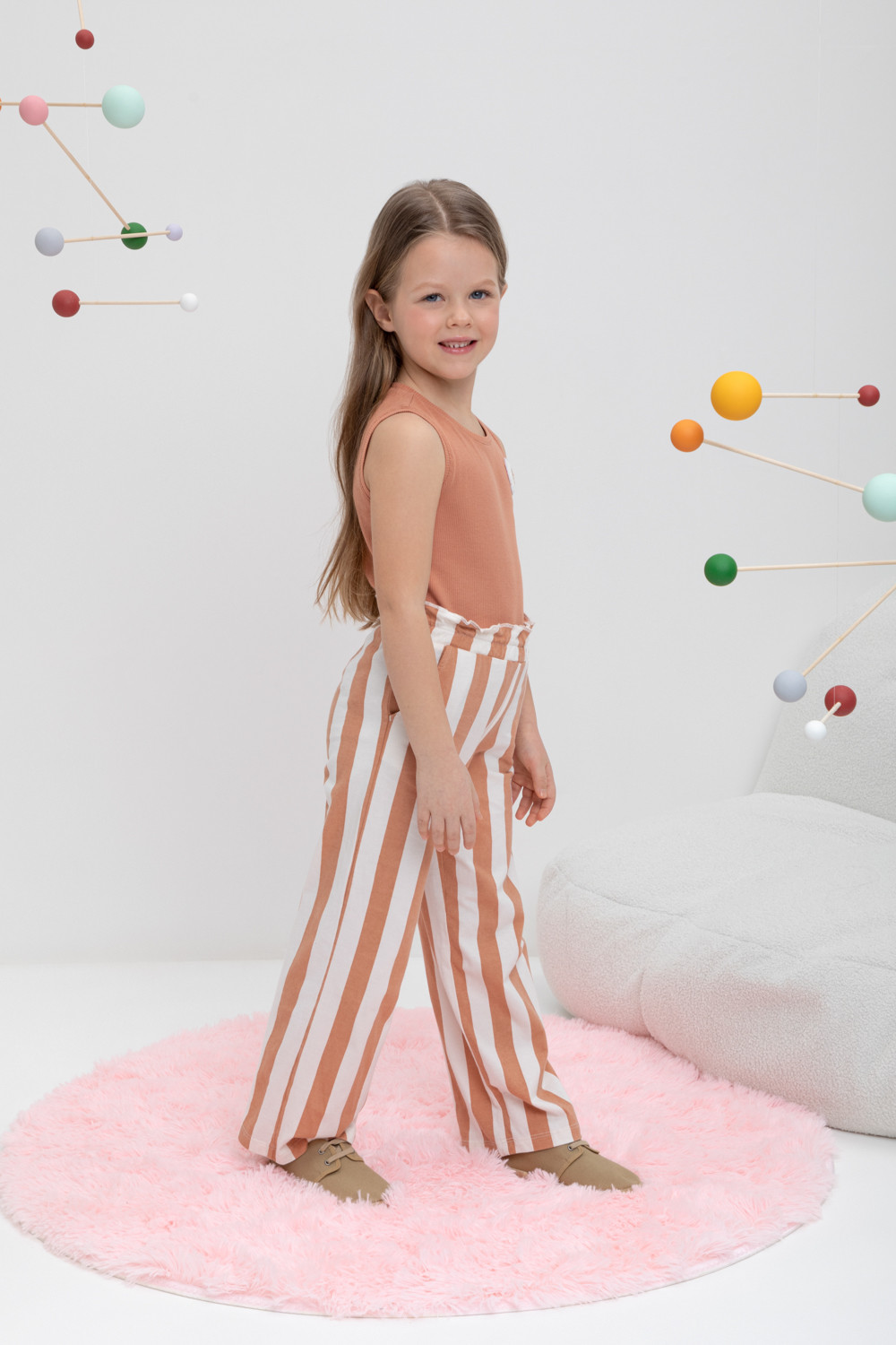 Легкие свободные трикотажные брюки для девочки из высококачественного хлопка. Оригинальная набивка выполнена из стойких текстильных гипоаллергенных красителей.