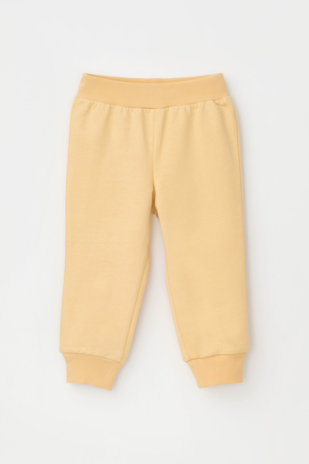 Трикотажные брюки для девочки из петельчатого футера. Пояс на резинке, внизу эластичные манжеты.