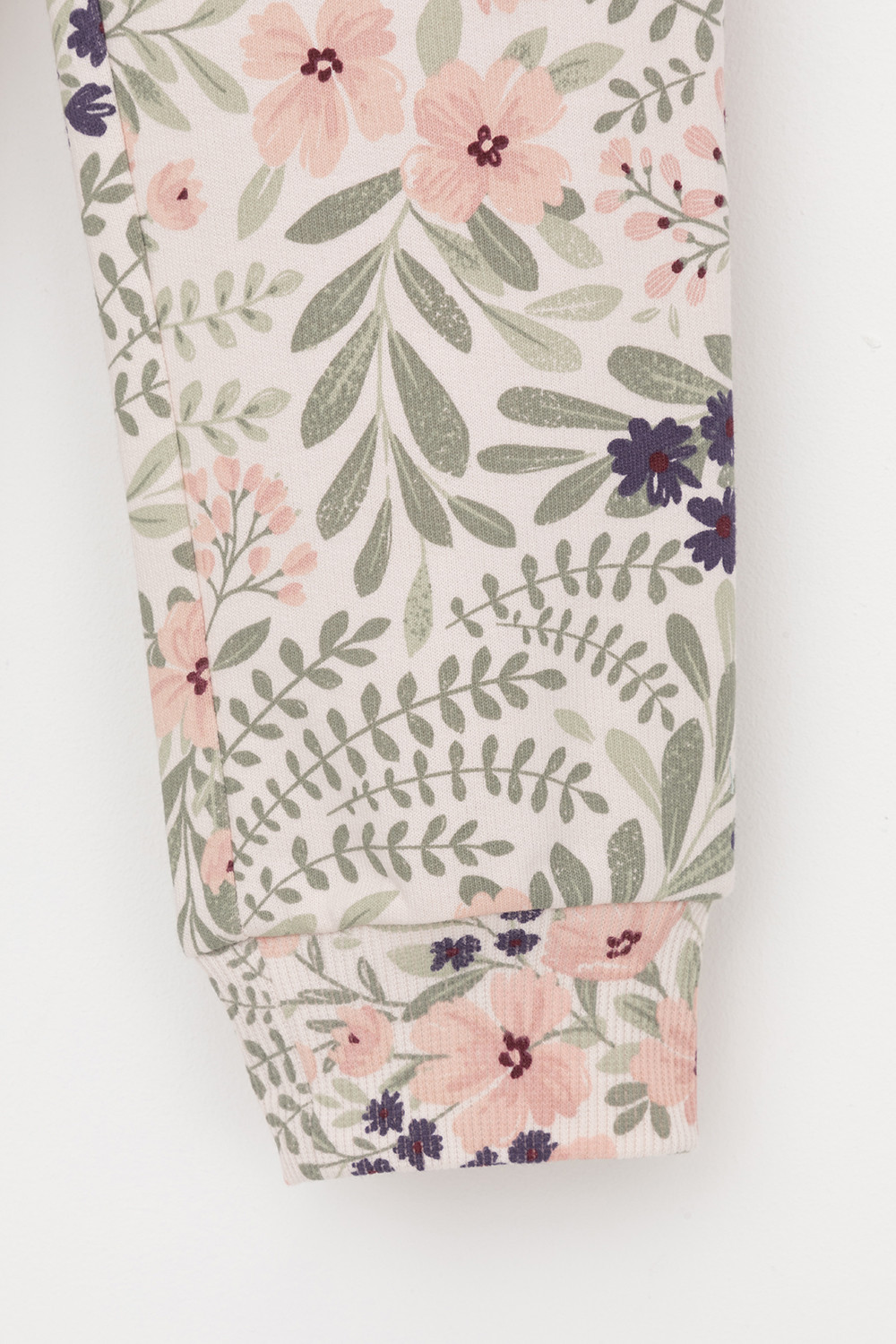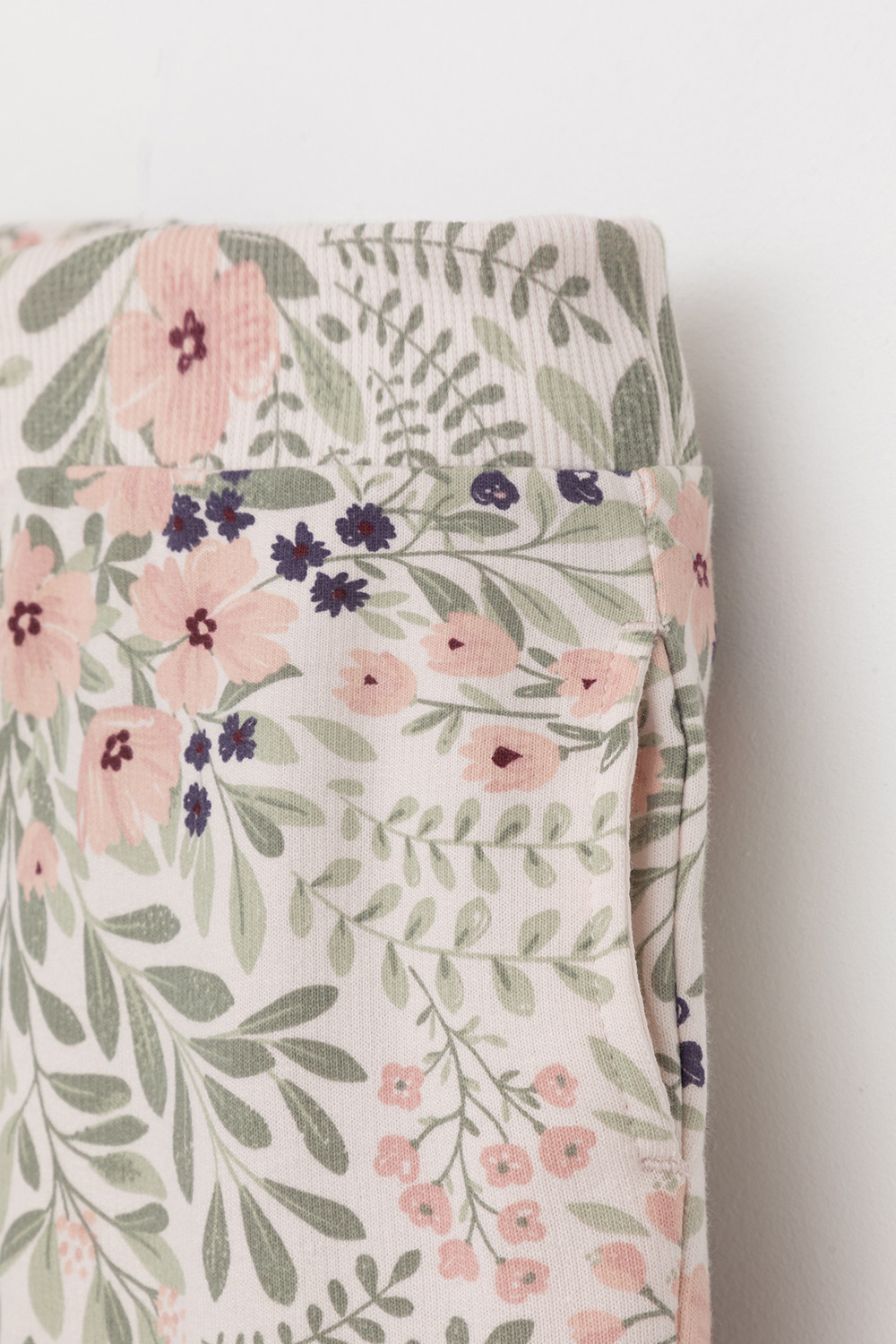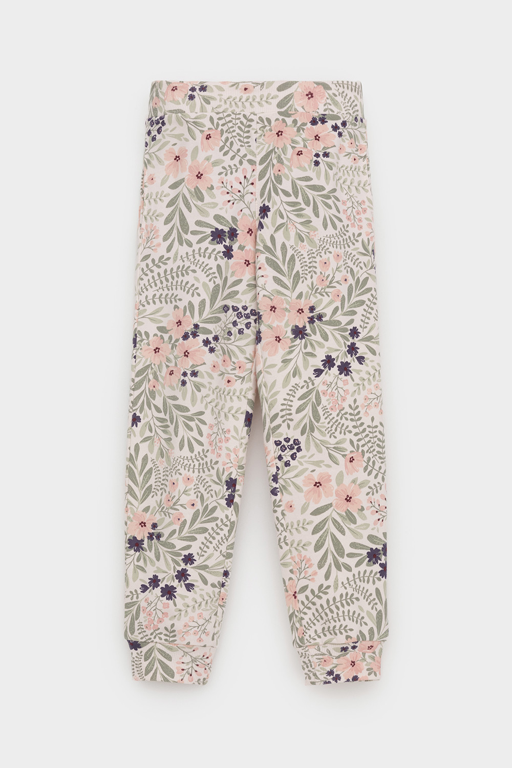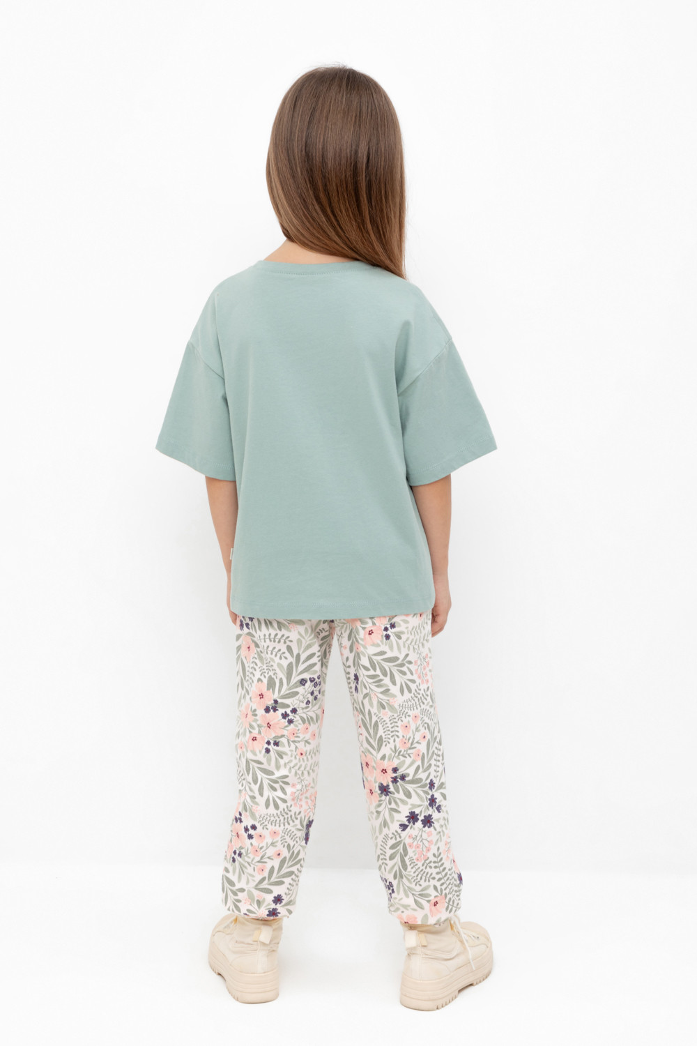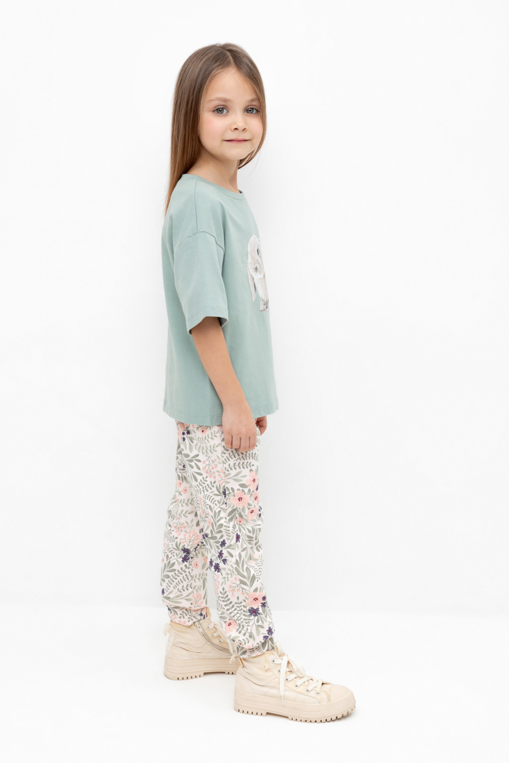 Трикотажные брюки для девочки из мягкого петельчатого футера. Эластичный пояс на резинке, по бокам два удобных кармана, внизу эластичные манжеты.